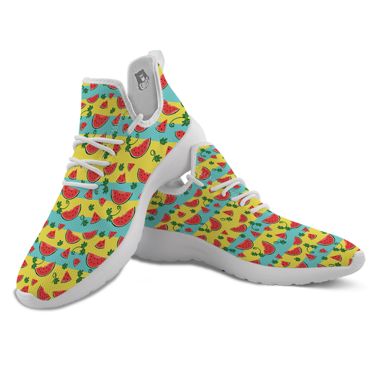 Watermelon Pieces Yellow Print Pattern White Athletic Shoes
