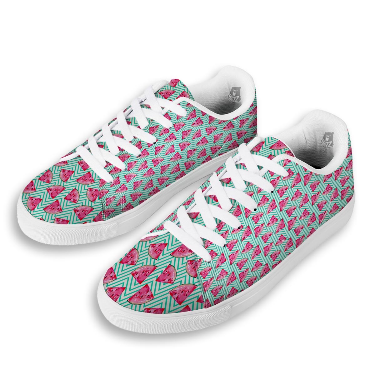 Watermelon Teal Chevron Print Pattern White Low Top Sneakers