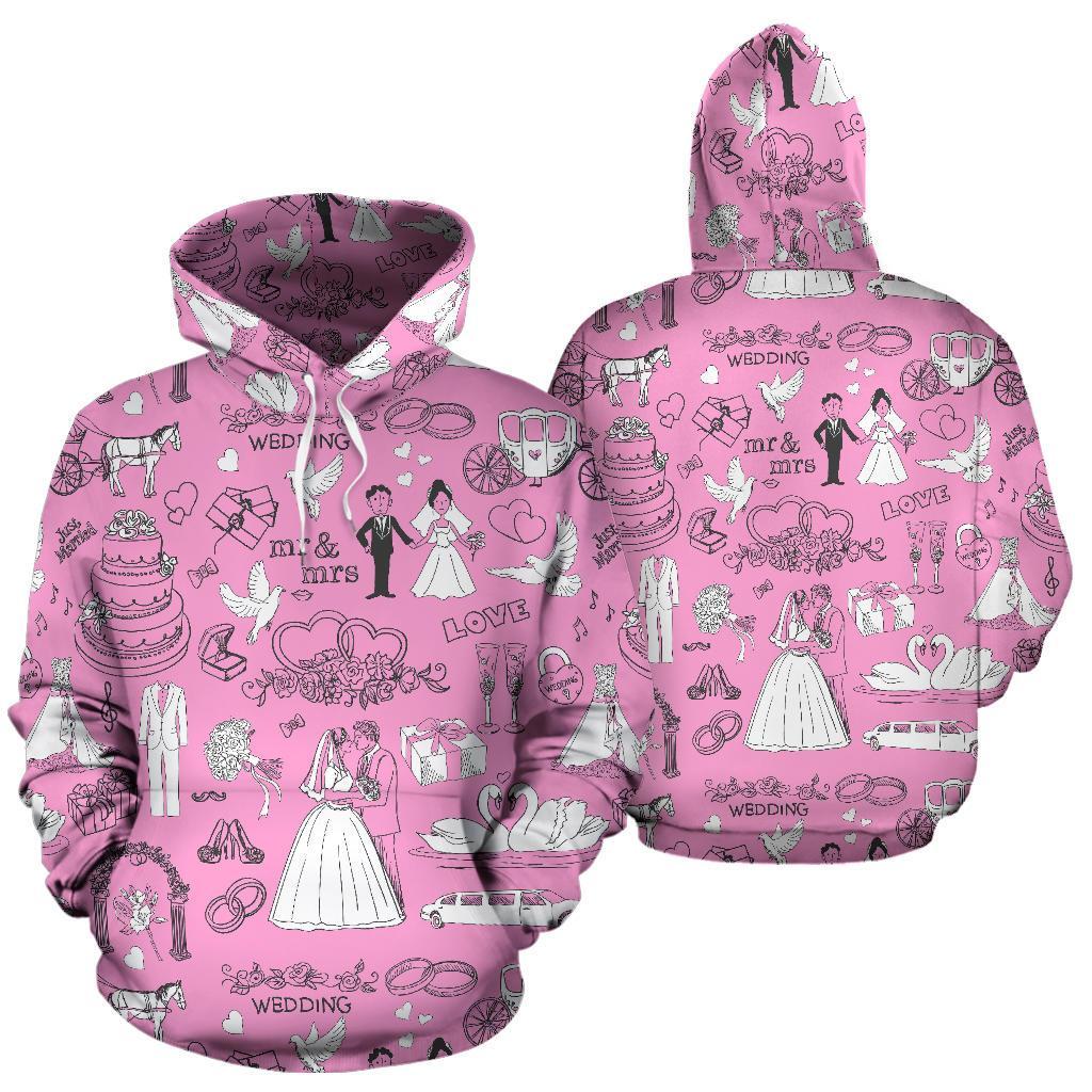 Wedding Pink Pattern Print Men Women Pullover Hoodie