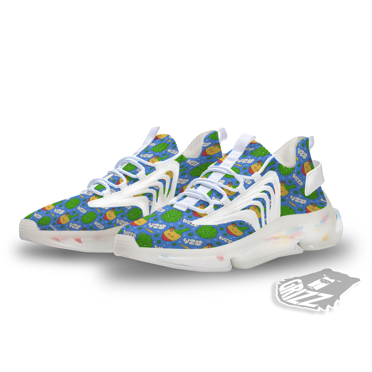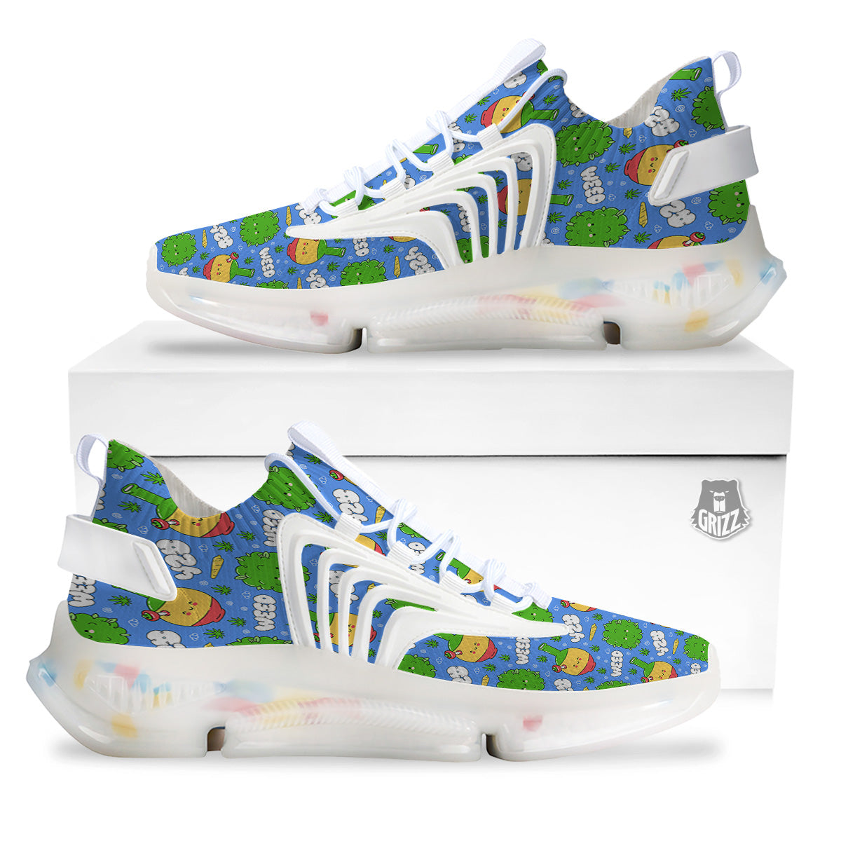 Weed Marijuana Cartoon Print Pattern White Gym Shoes
