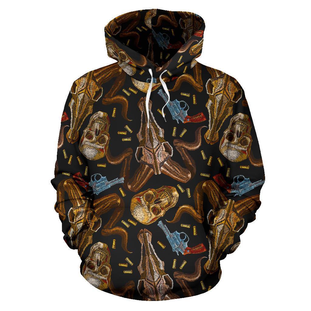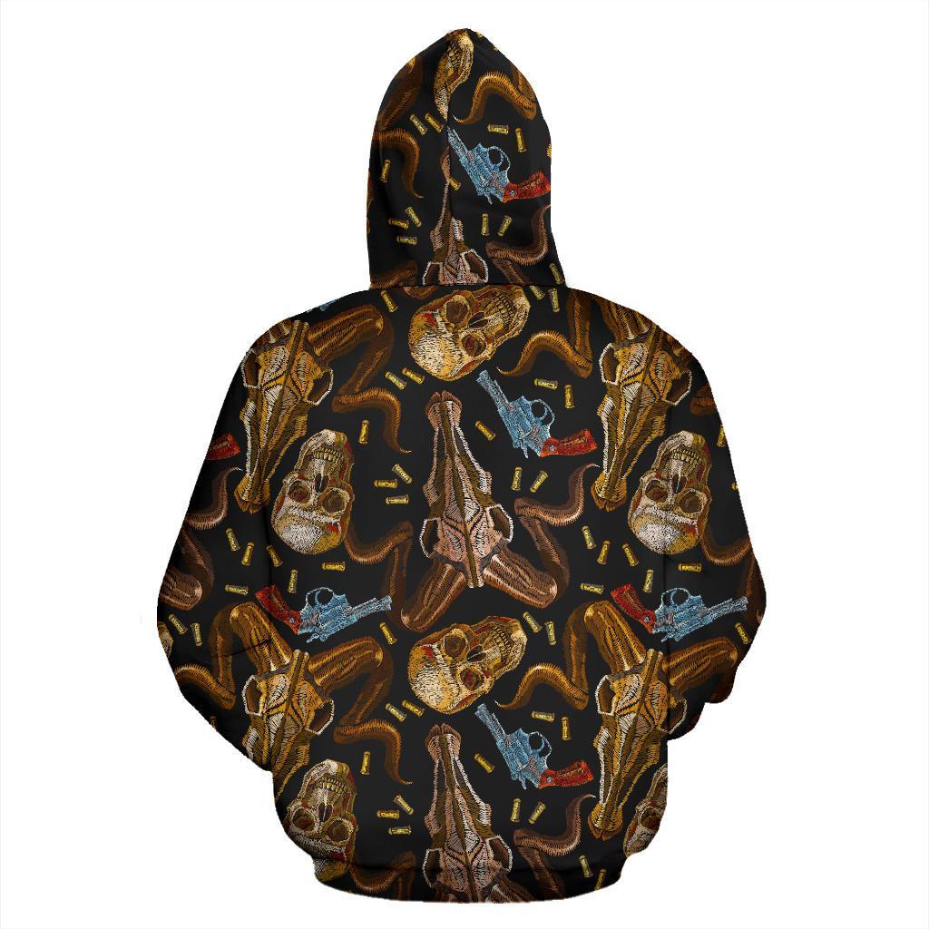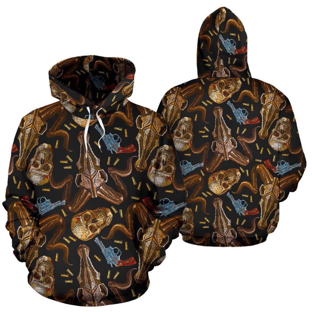 Western Cowboy Gun Print Pattern Men Women Pullover Hoodie