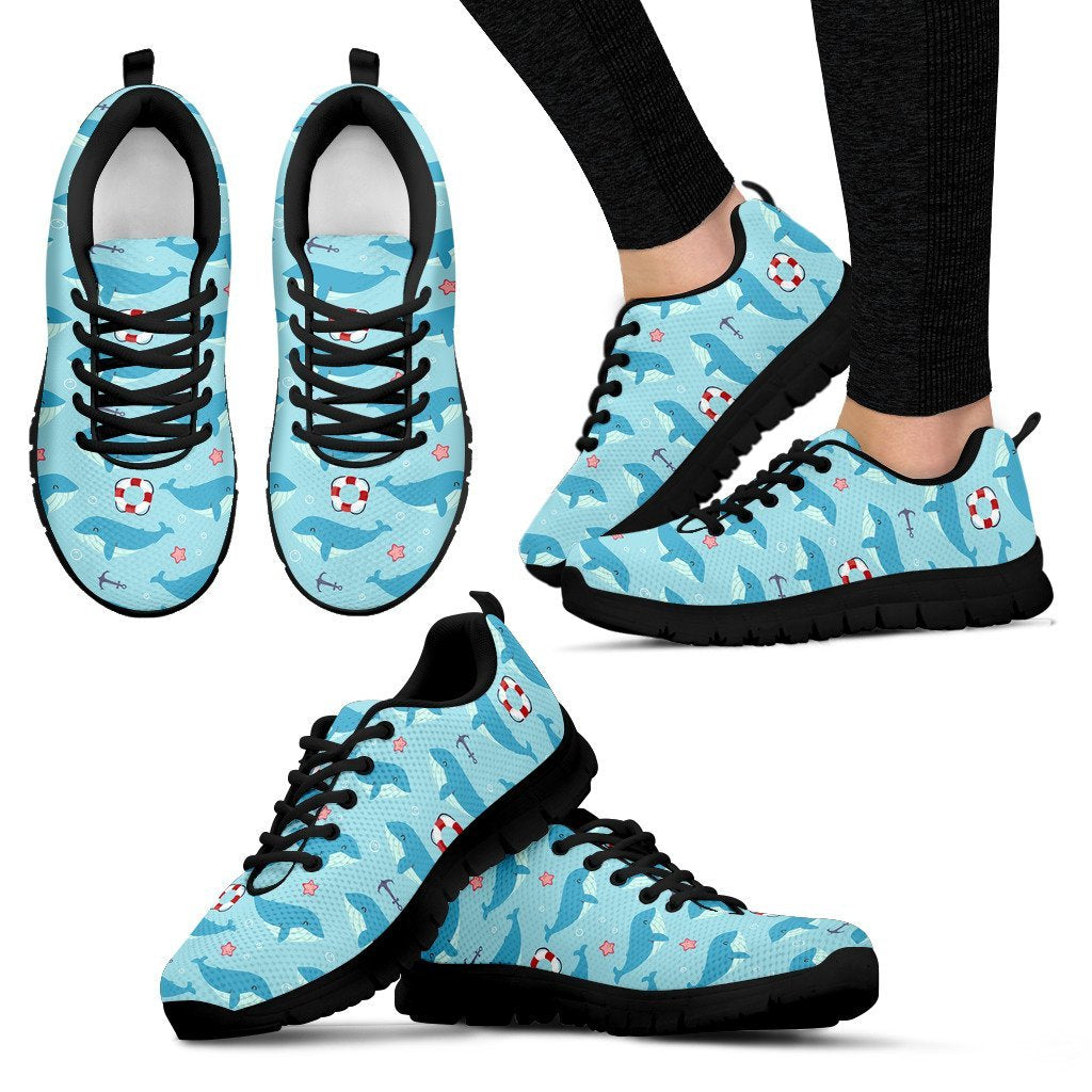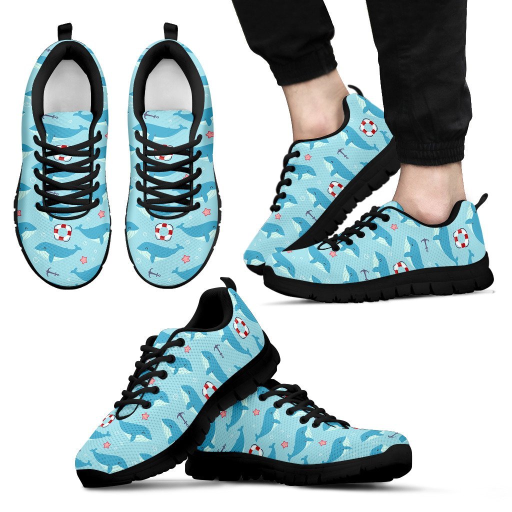 Whale Humpback Pattern Print Black Sneaker Shoes For Men Women