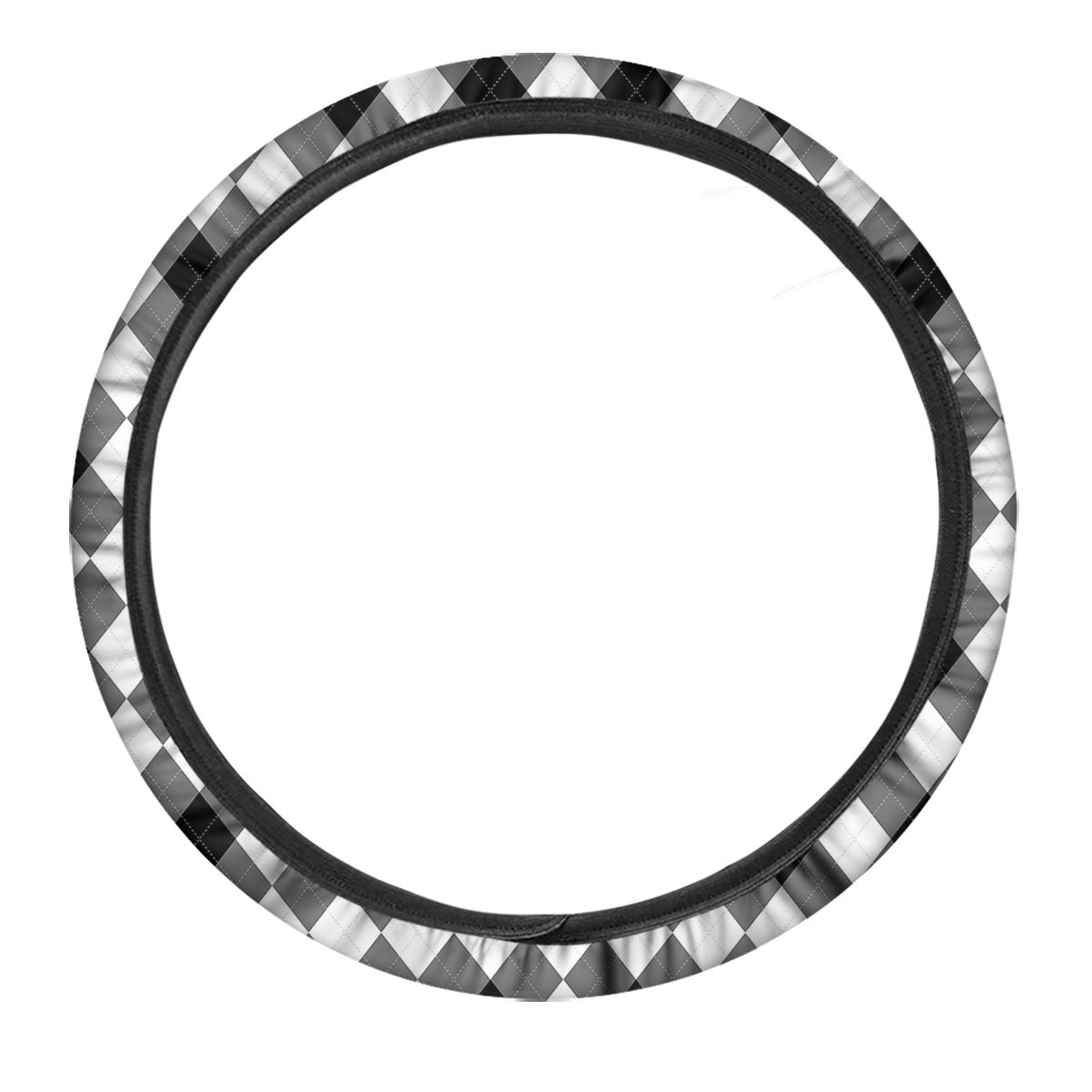 White And Black Argyle Print Pattern Car Steering Wheel Cover