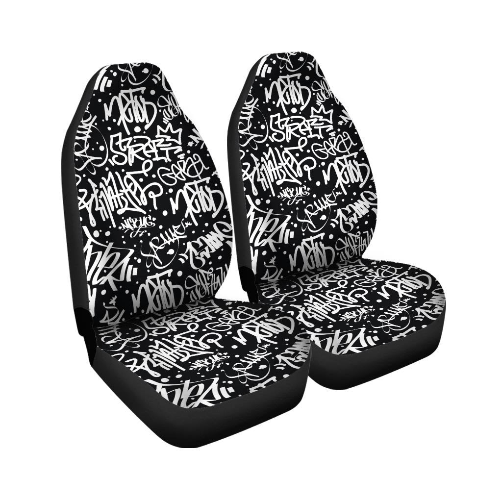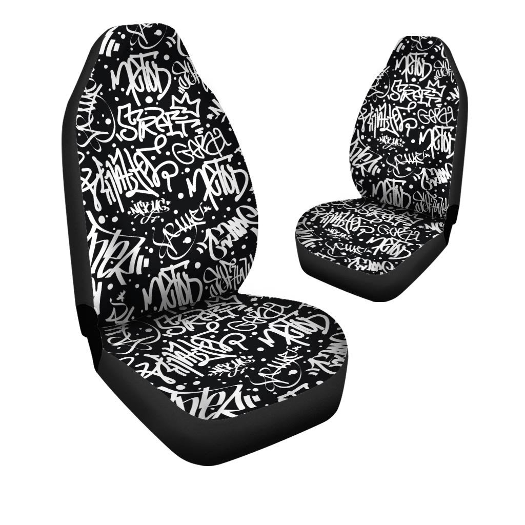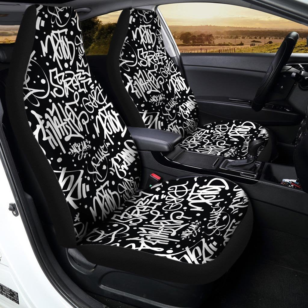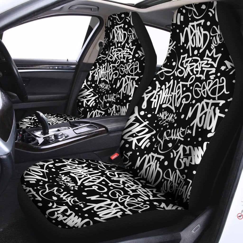 White And Black Graffiti Doodle Text Print Car Seat Covers