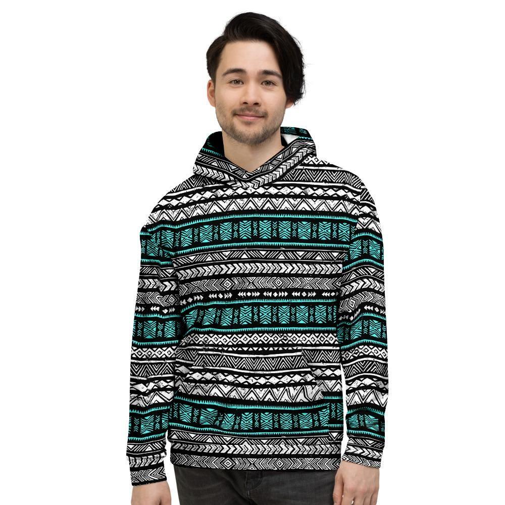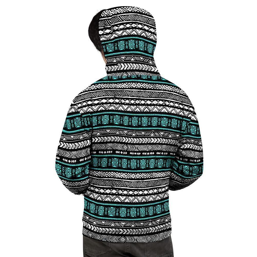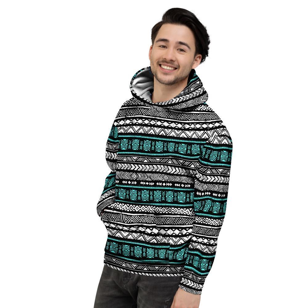 White and Turquoise Tribal Navajo Hand Drawn Men's Hoodie