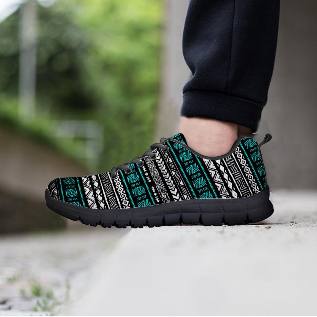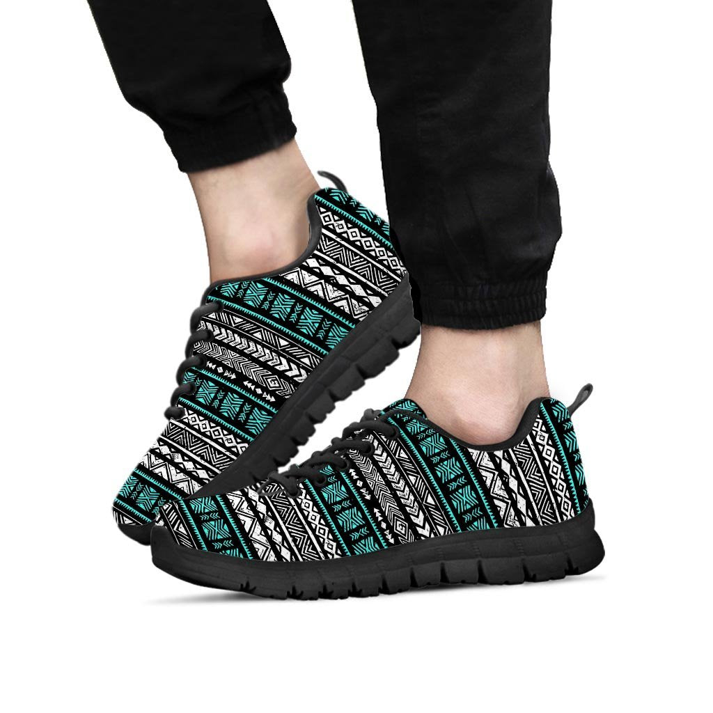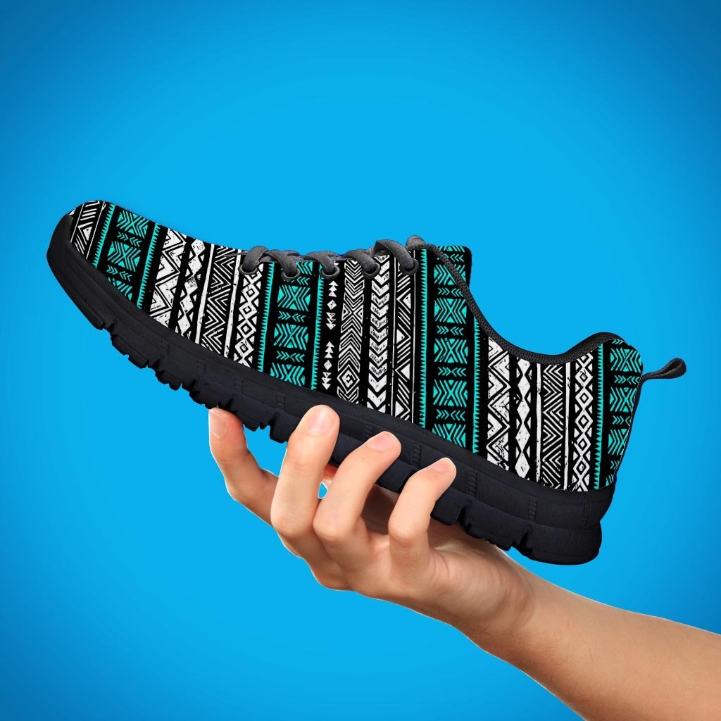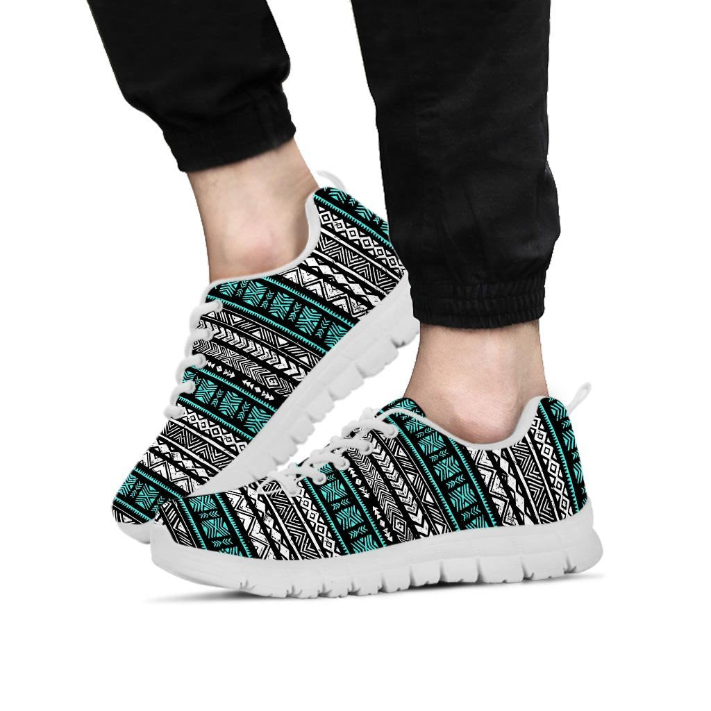 White and Turquoise Tribal Navajo Hand Drawn Men's Sneakers