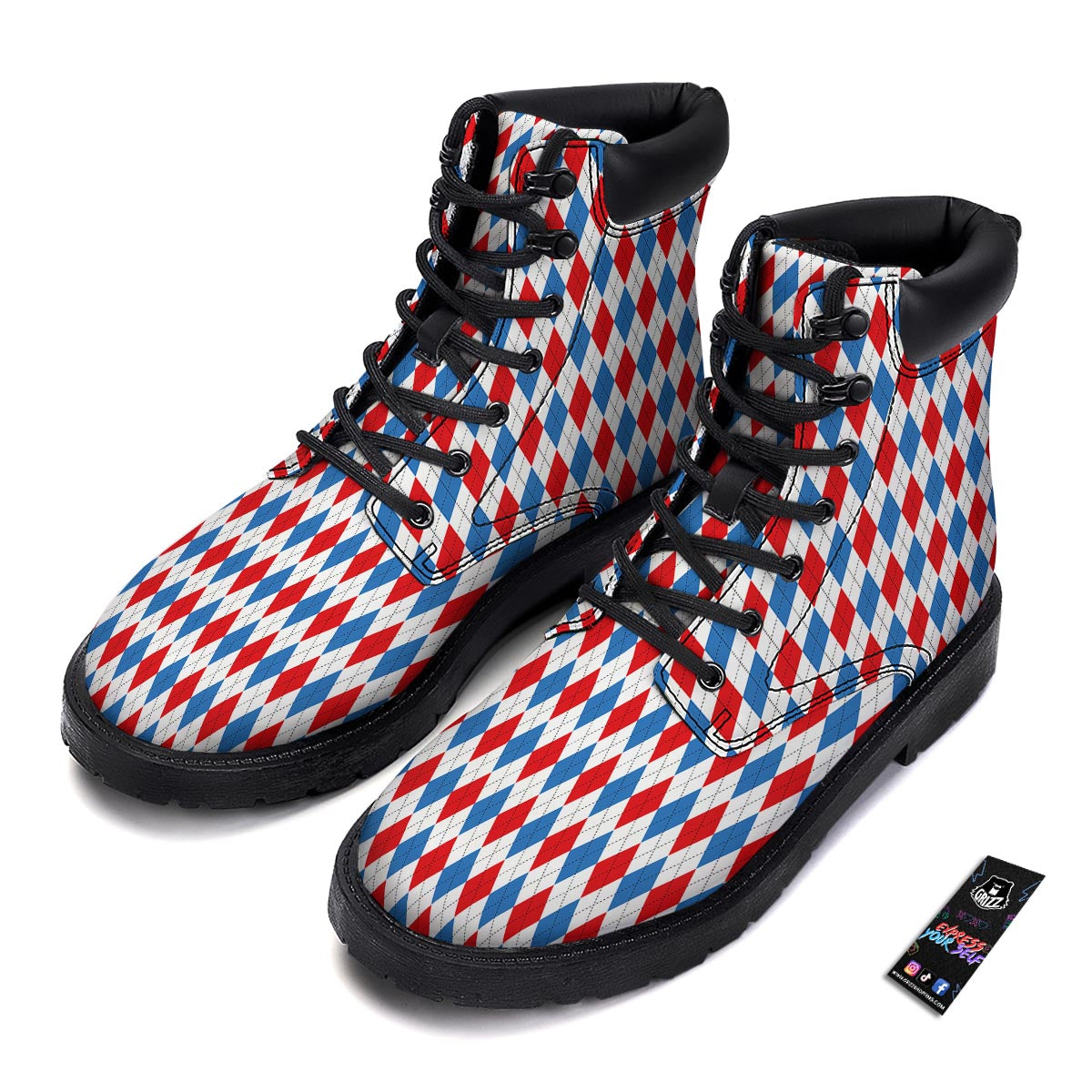 Looking for a unique Boots? Check out our White Argyle And Blue Red Print Pattern Boots at Grizzshopping. Our Boots are handcrafted to the highest quality standards that custom made for you