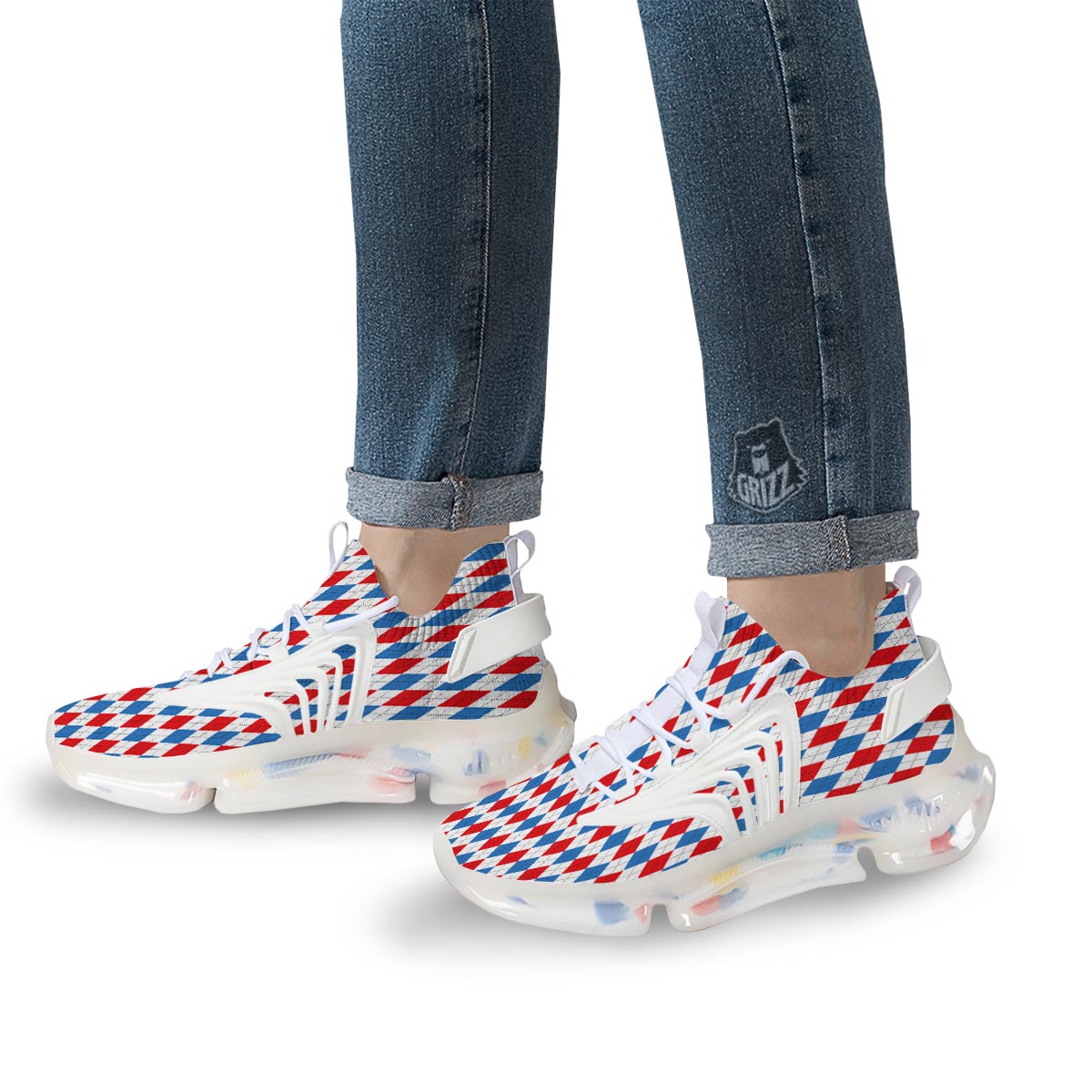 White Argyle And Blue Red Print Pattern White Gym Shoes