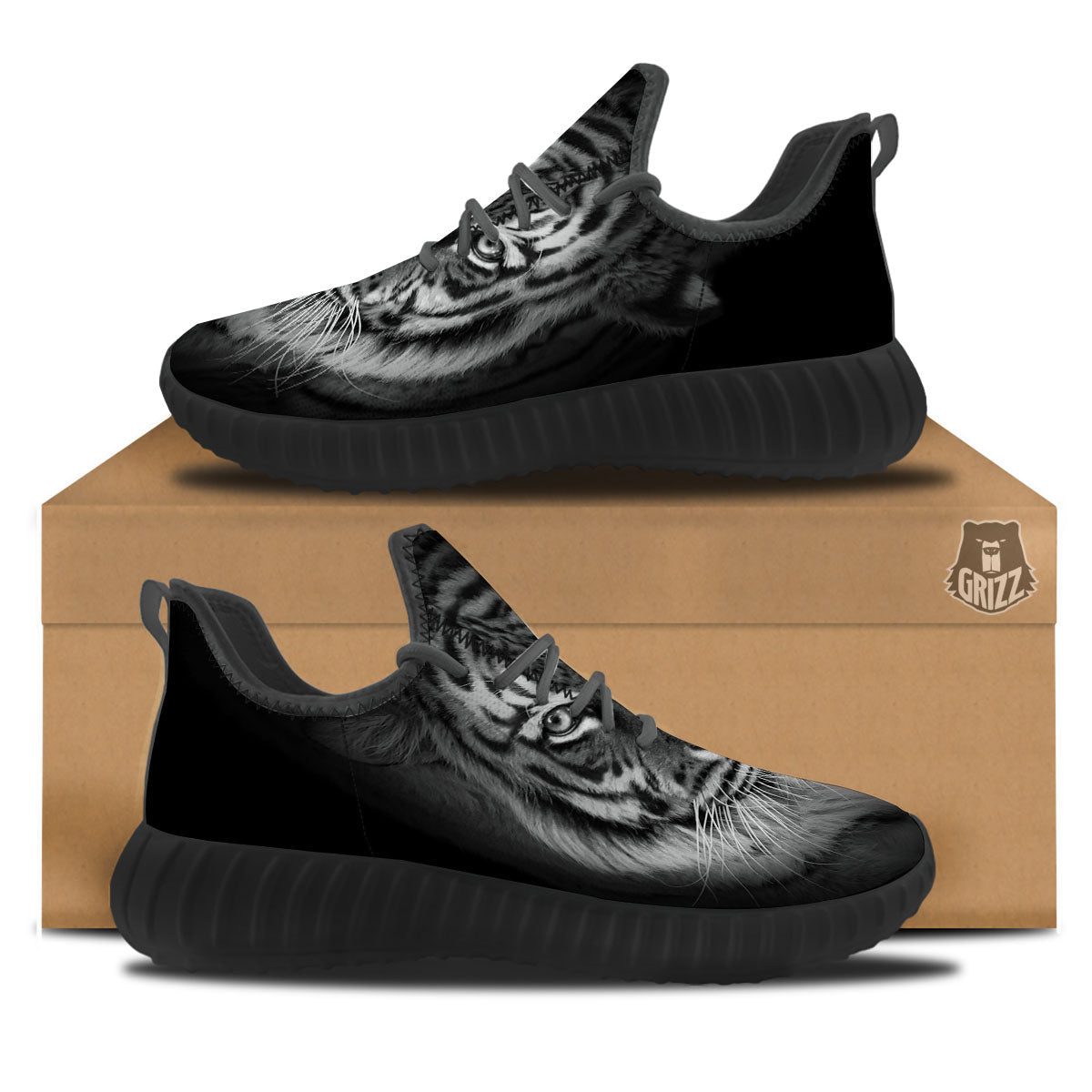Looking for unique walking shoes? Check out our White Bengal Tiger Monochrome Print Black Walking Shoes at Grizzshopping. Our walking shoes are handcrafted to the highest quality standards and custom-made for you