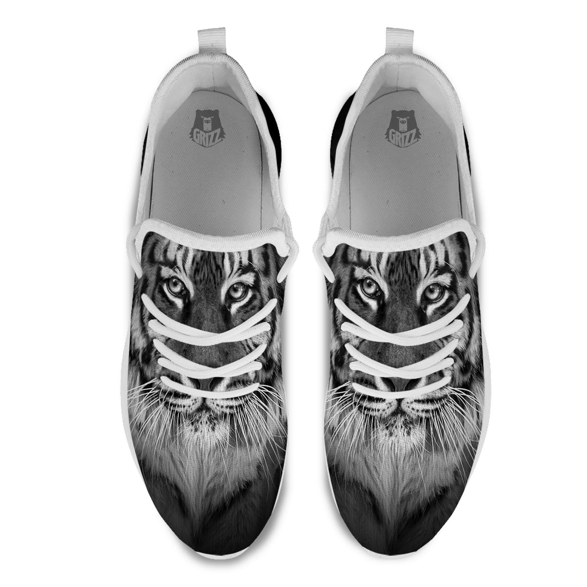 White Bengal Tiger Monochrome Print White Athletic Shoes