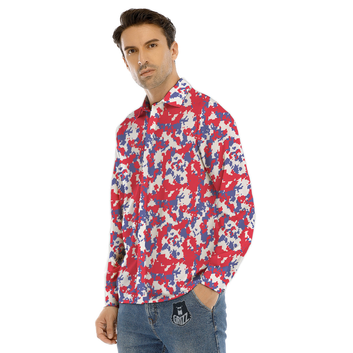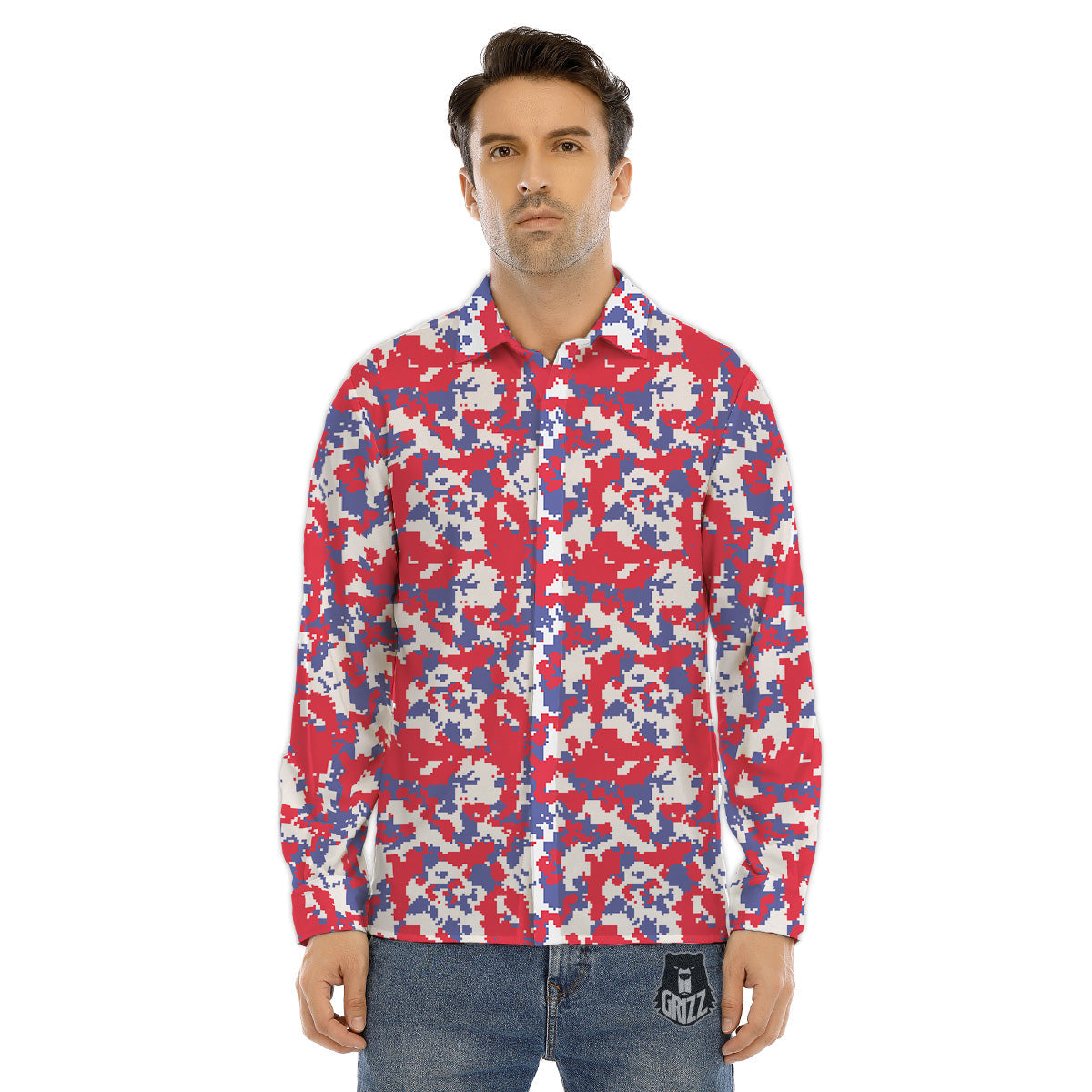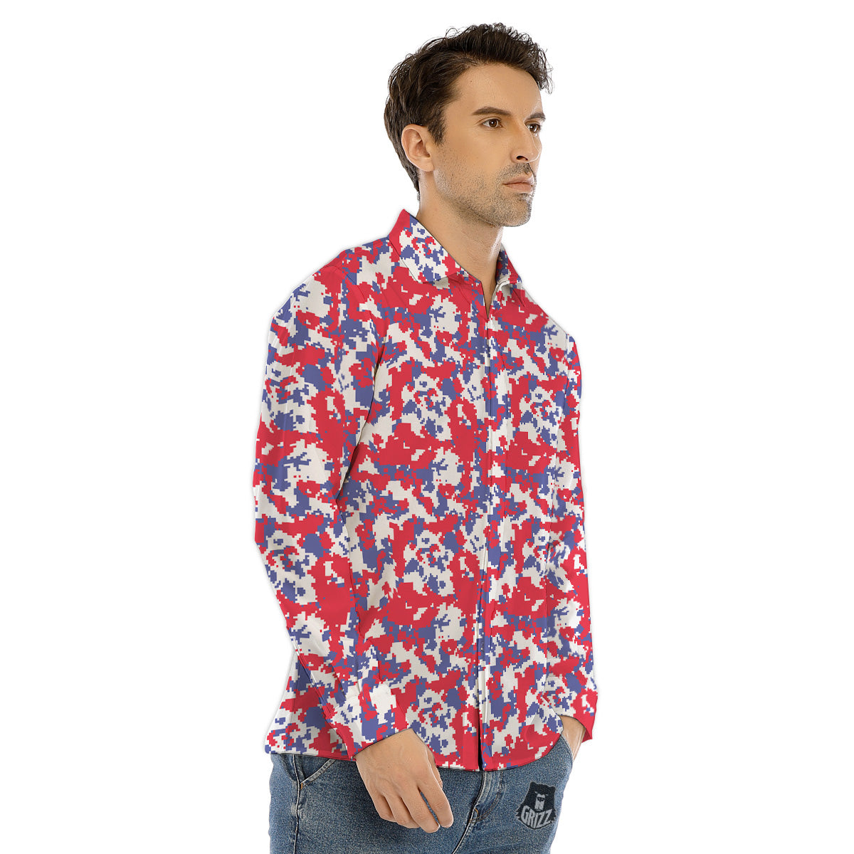 Looking for a unique Dress Shirts? Check out our White Digital Camo And Blue Red Print Men's Dress Shirts at Grizzshopping. Our Long Sleeve Shirt are handcrafted to the highest quality standards that custom made for you