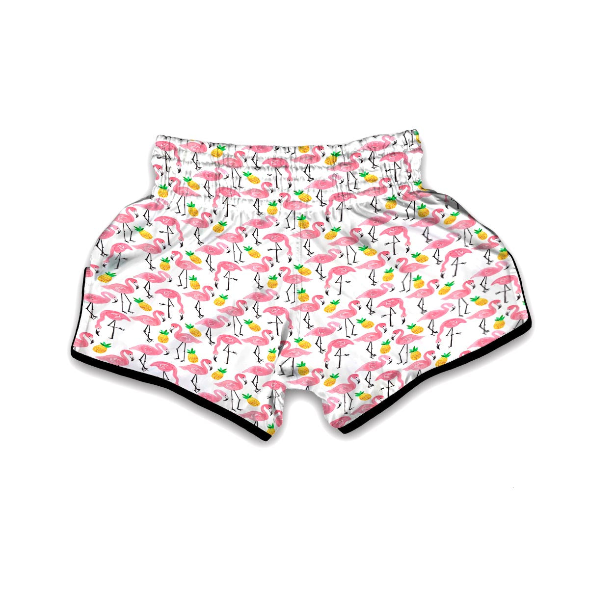 White Flamingo Pineapple Print Muay Thai Boxing Shorts