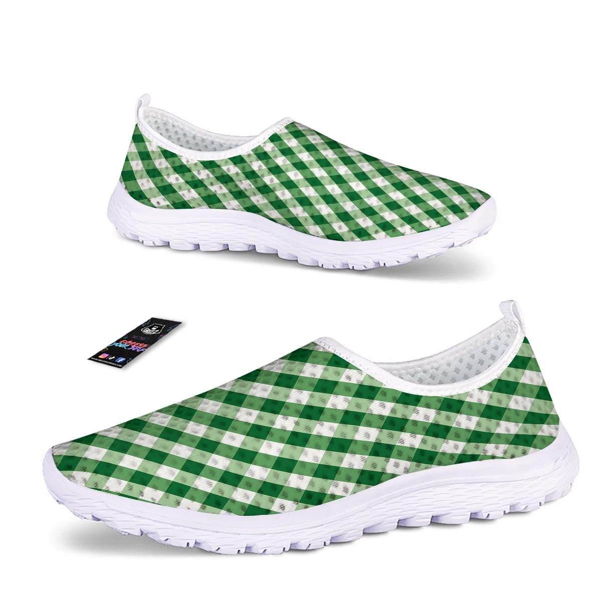 White Gingham And Green Shamrock Print Pattern Nurse Shoes