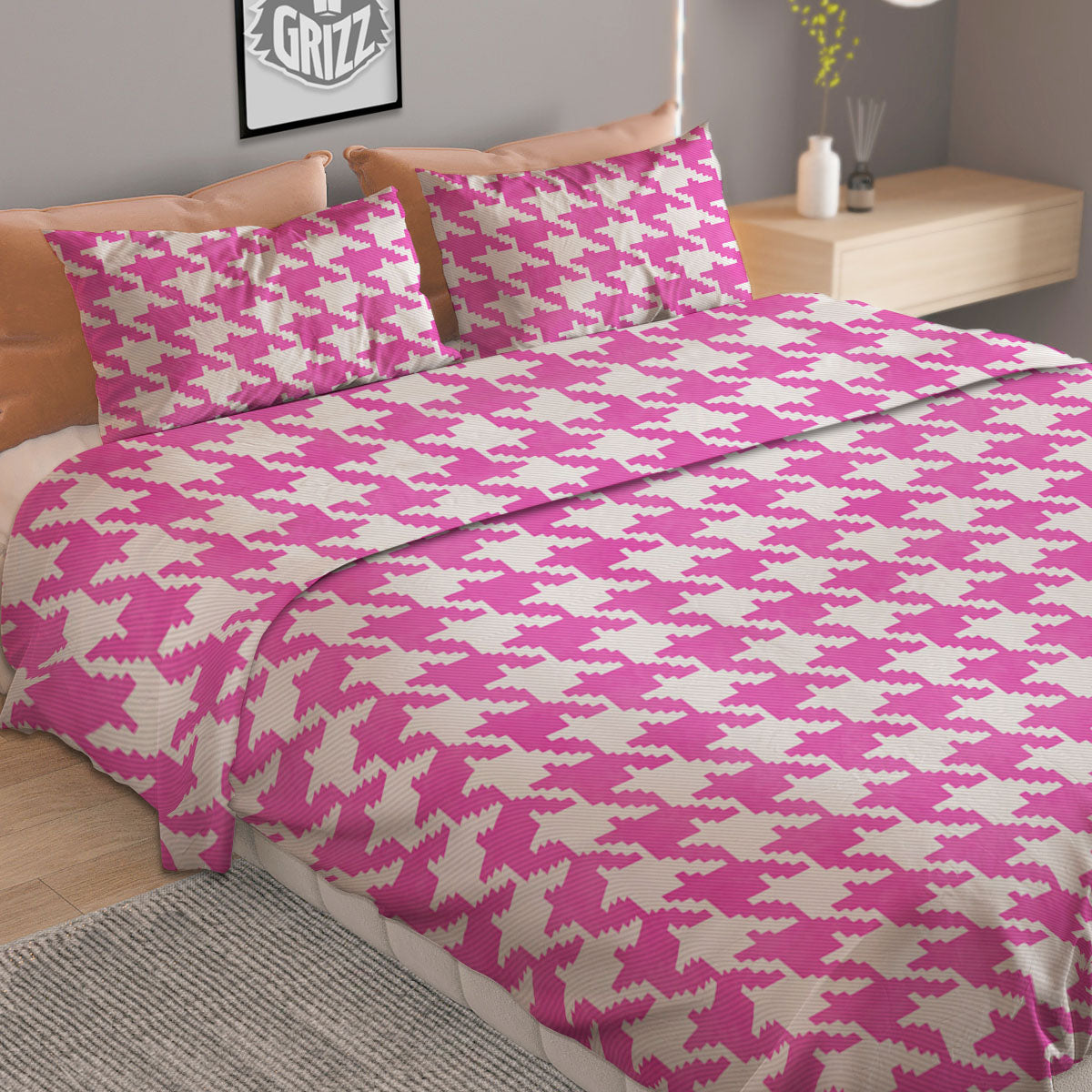 White Houndstooth And Pink Print Duvet Cover Bedding Set