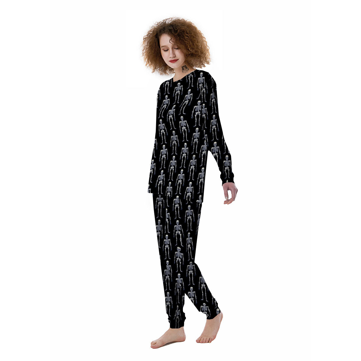 White Skeleton And Black Print Pattern Women's Pajamas