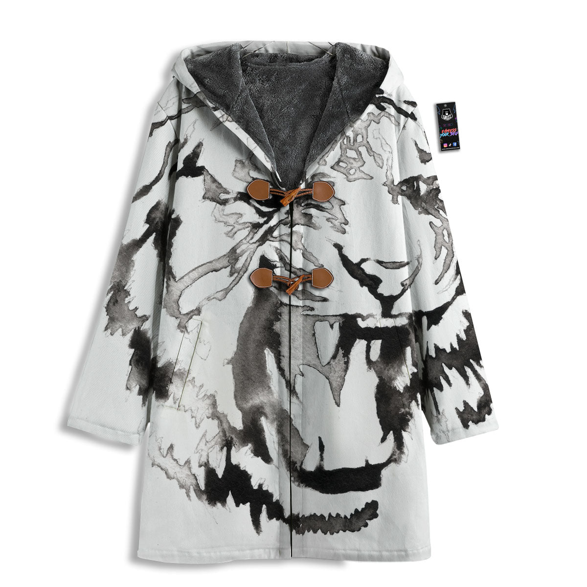 White Tiger Watercolor Monochrome Print Men's Windbreaker Jacket
