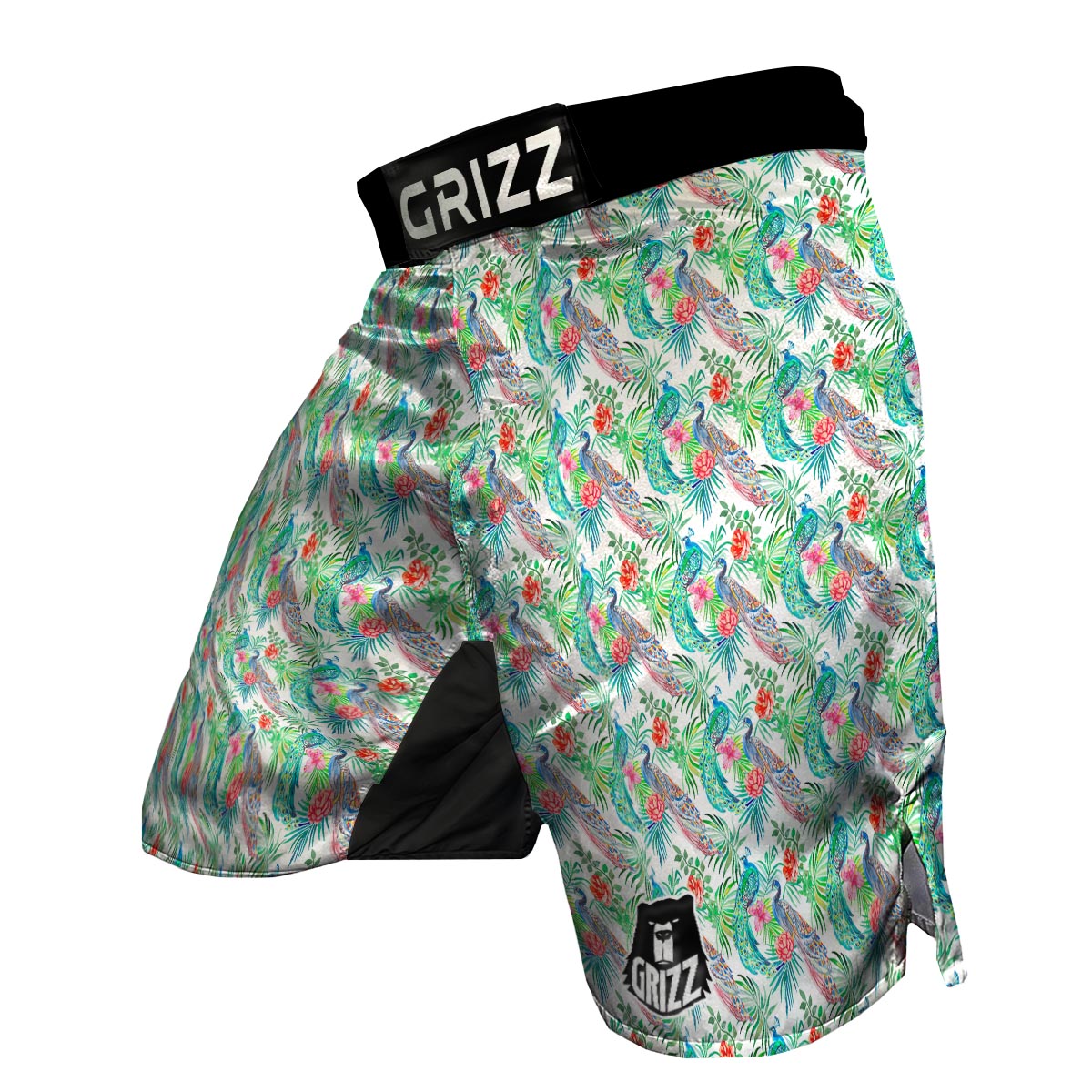 Are you searching for that pair of custom MMA Shorts? Check out our White Tropical Peacock MMA Shorts at Grizzshopping. Introducing Grizz custom sublimation MMA shorts, the must-have awesome shorts that would make you look good while performing like the King of the cage.