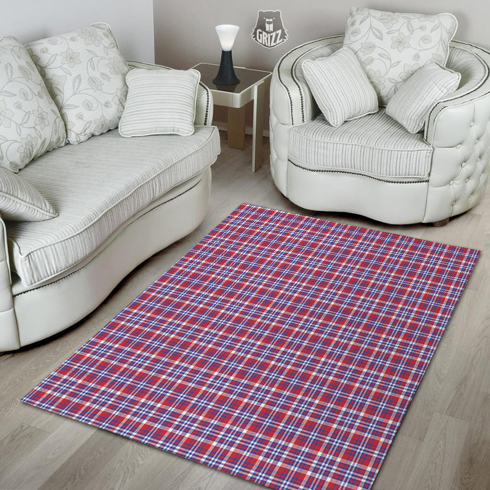 White USA Plaid And Blue Red Print Floor Mat
