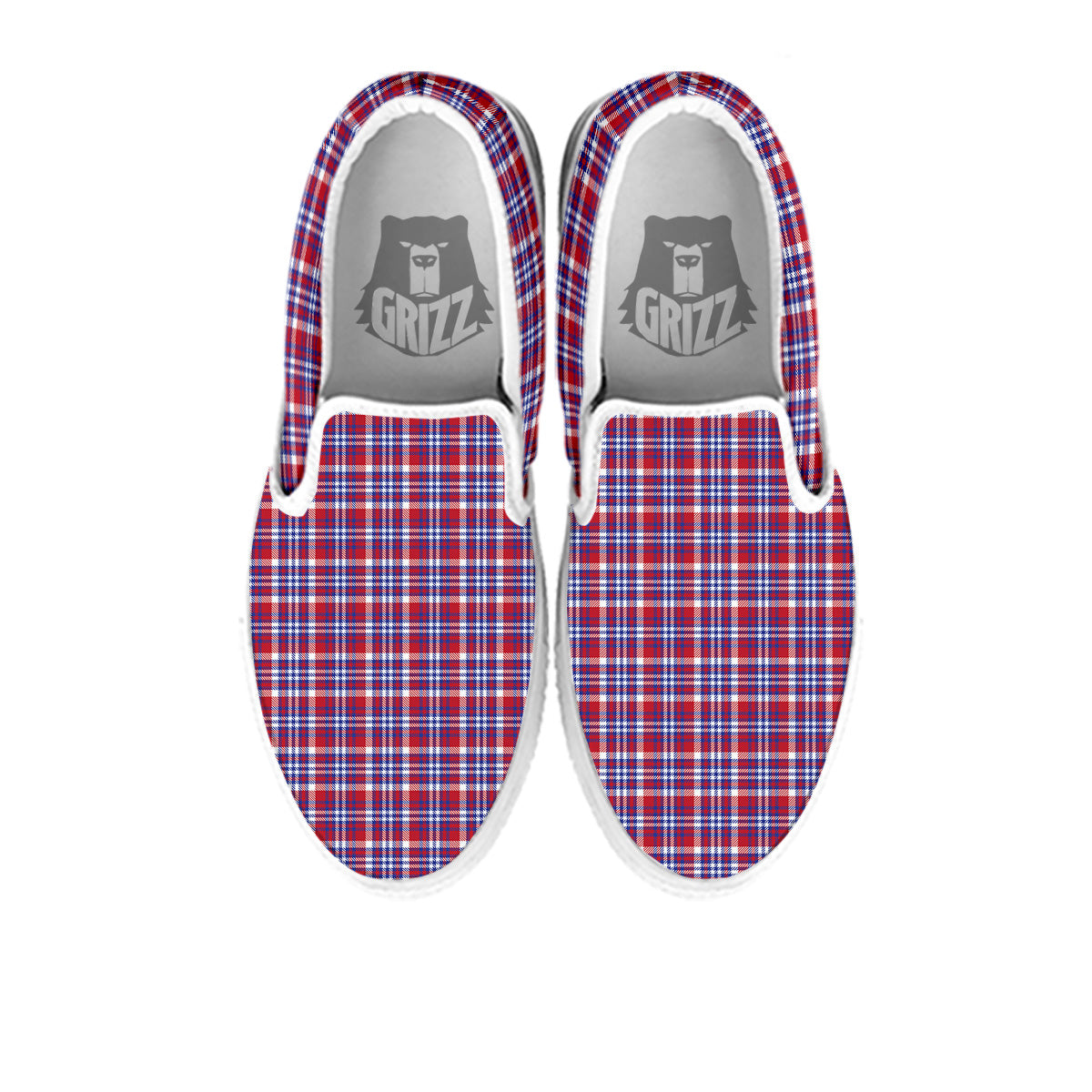 White USA Plaid And Blue Red Print White Slip On Shoes