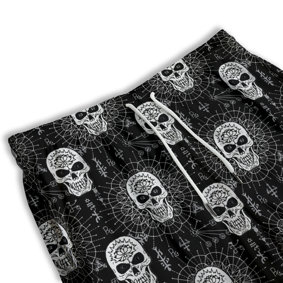 Wicca Evil Skull White And Black Print Men's Athletic Shorts