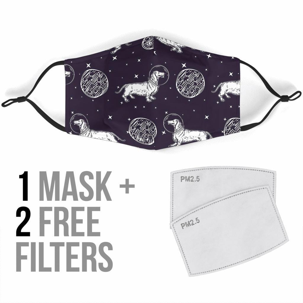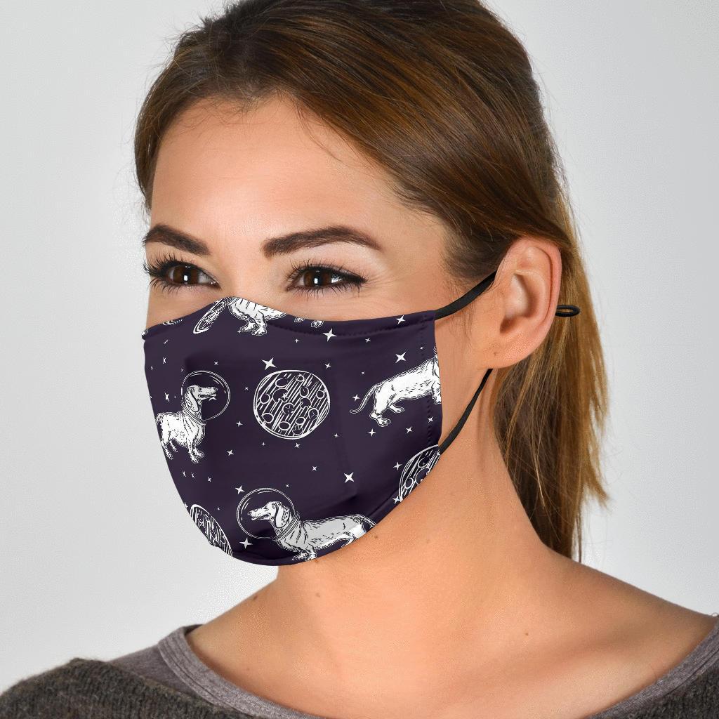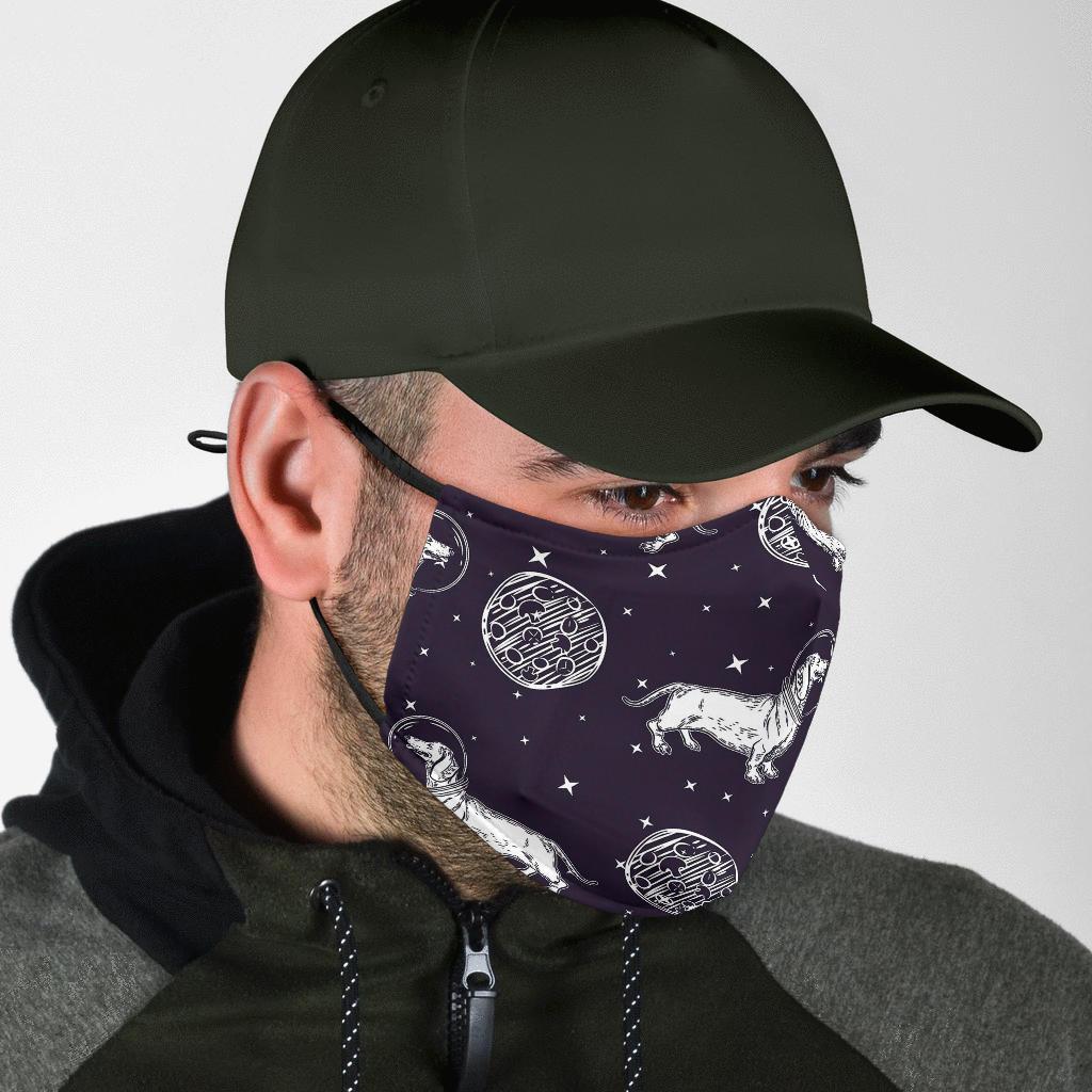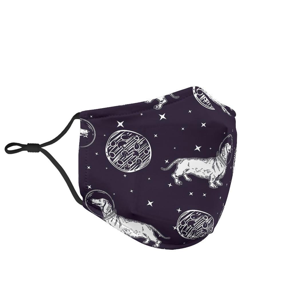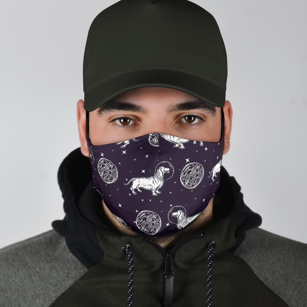 Wiener Dog Dachshund Astronaut Pattern Print Face Mask
