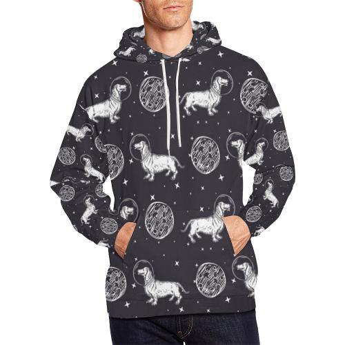Wiener Dog Dachshund Astronaut Pattern Print Men Pullover Hoodie