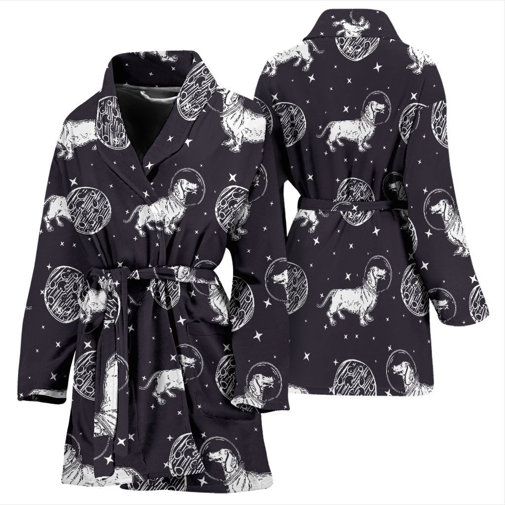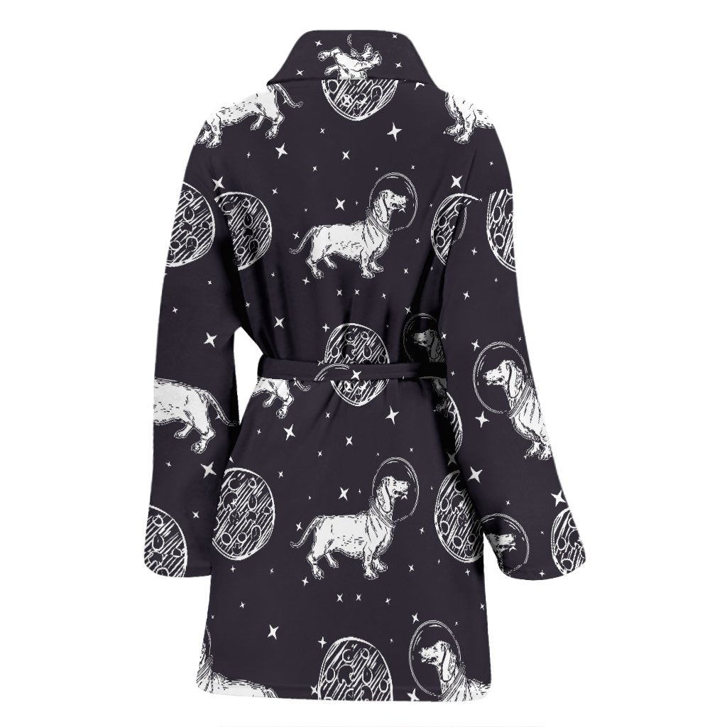 Wiener Dog Dachshund Astronaut Pattern Print Women Long Robe