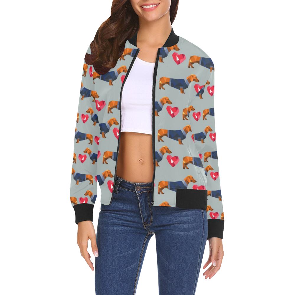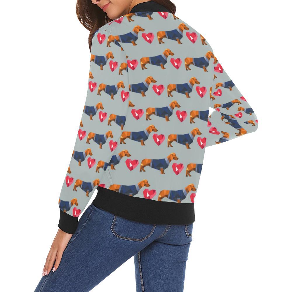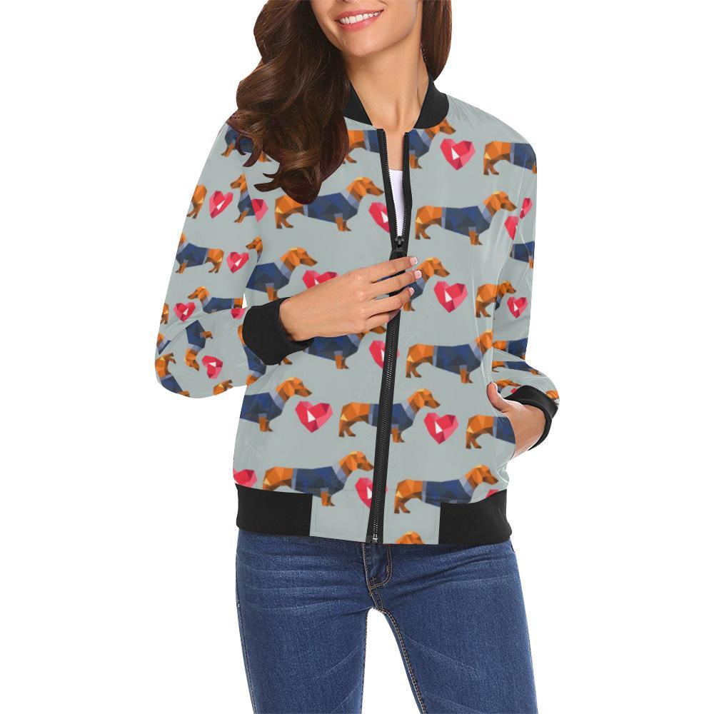 Wiener Dog Dachshund Pattern Print Women Casual Bomber Jacket