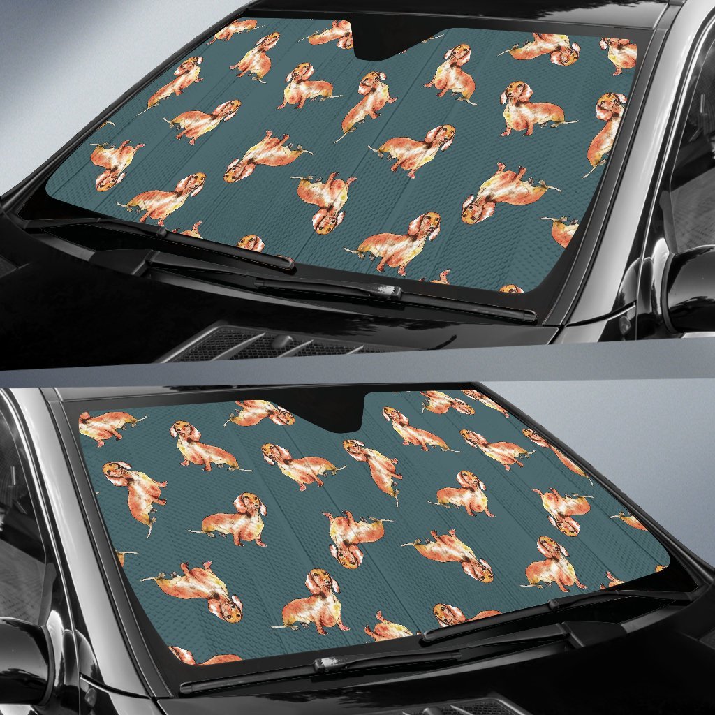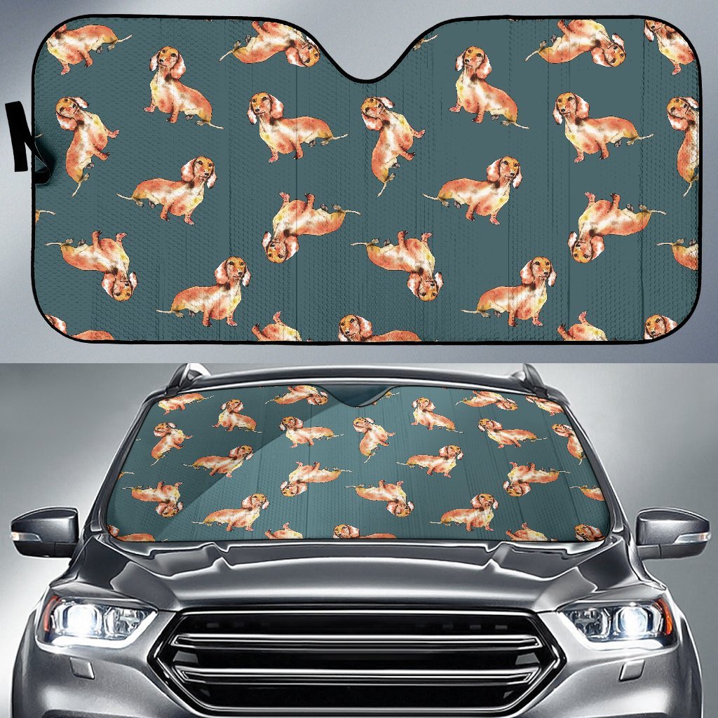 Wiener Dog Dachshund Portrait Pastel Pattern Print Car Sun Shade