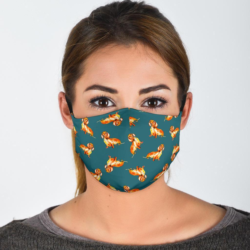 Wiener Dog Dachshund Portrait Pastel Pattern Print Face Mask