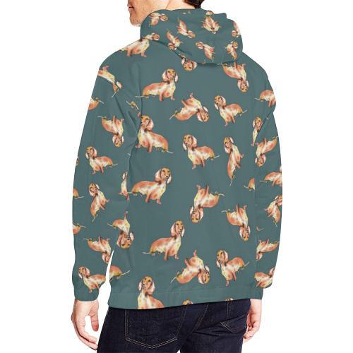 Wiener Dog Dachshund Portrait Pastel Pattern Print Men Pullover Hoodie