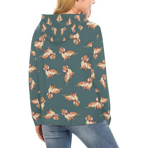 Wiener Dog Dachshund Portrait Pastel Pattern Print Women Pullover Hoodie