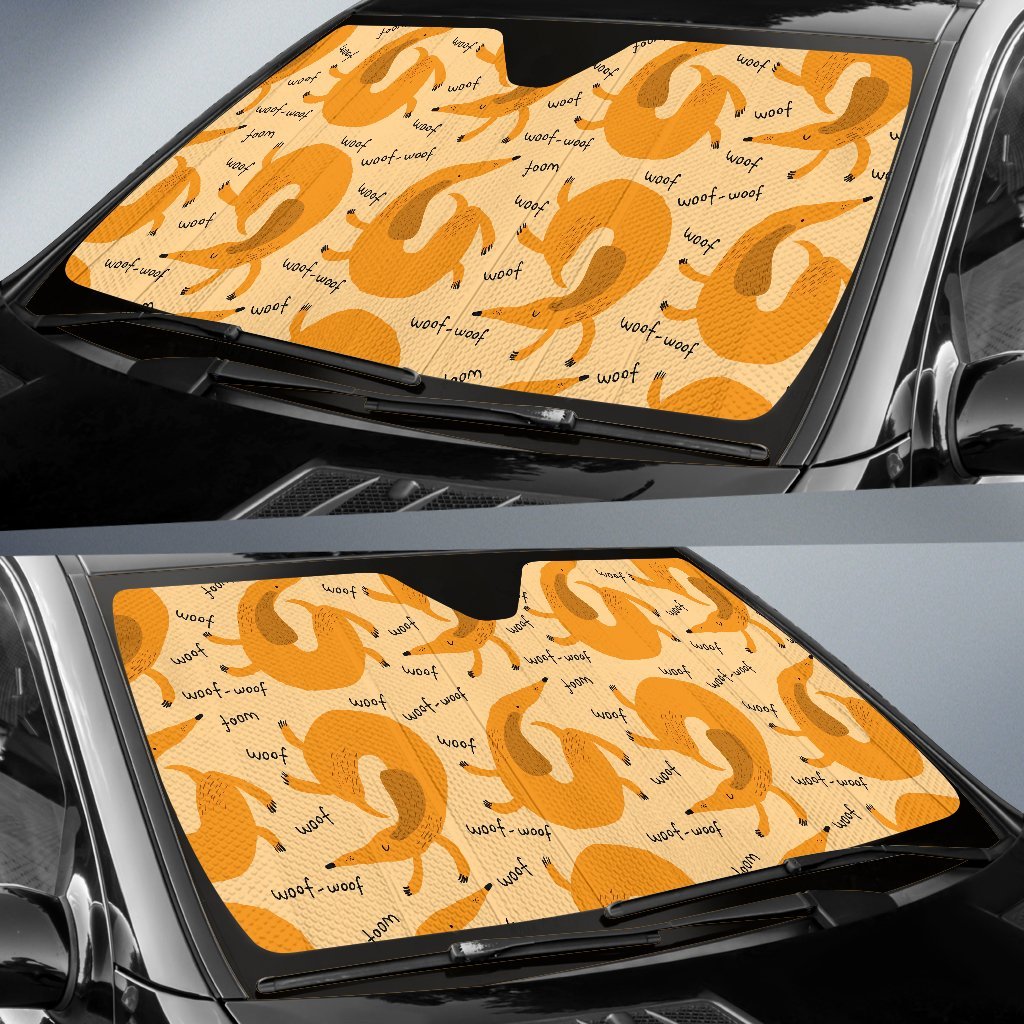 Wiener Dog Dachshund Woof Woof Pattern Print Car Sun Shade