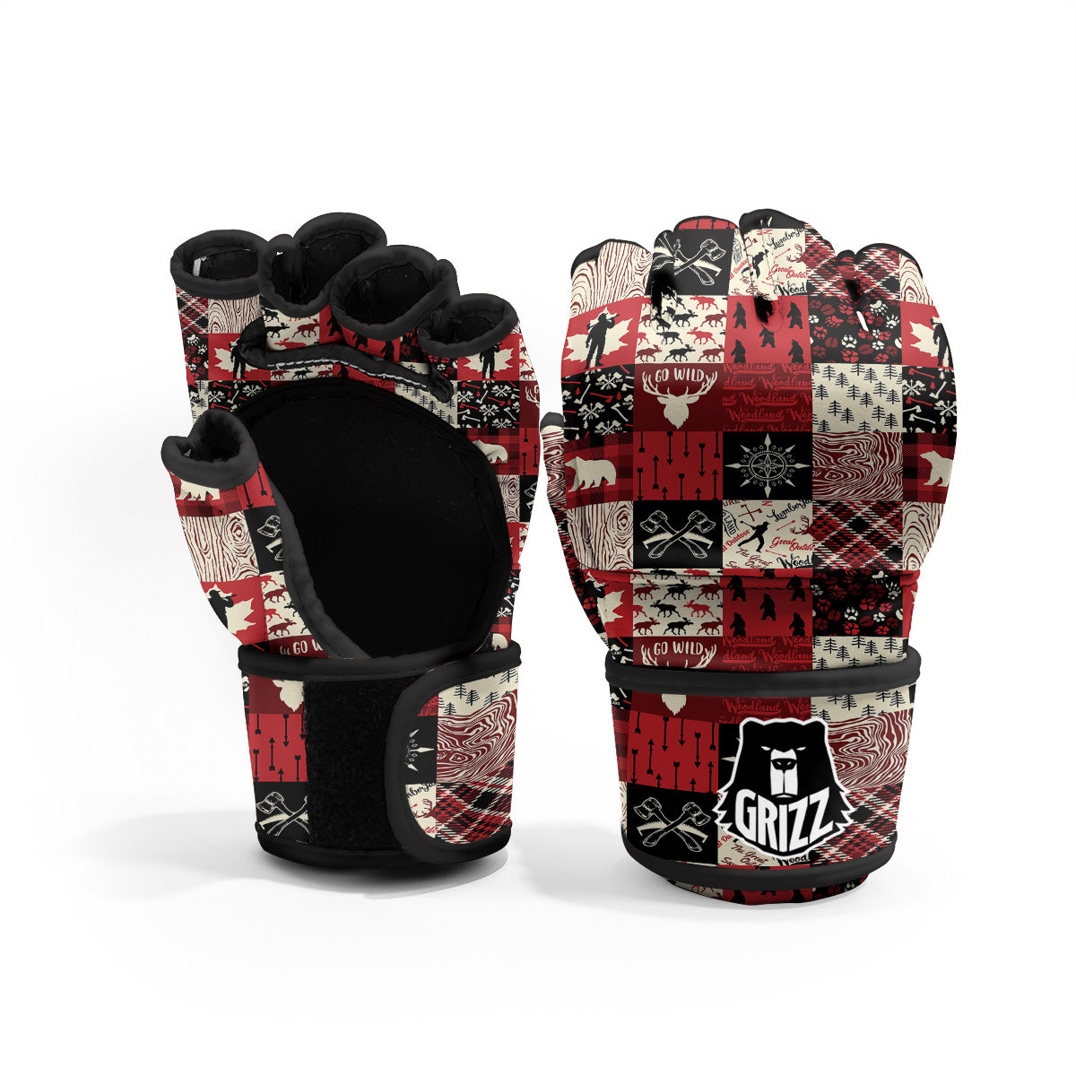 Wildlife Red Plaid Print Pattern MMA Gloves