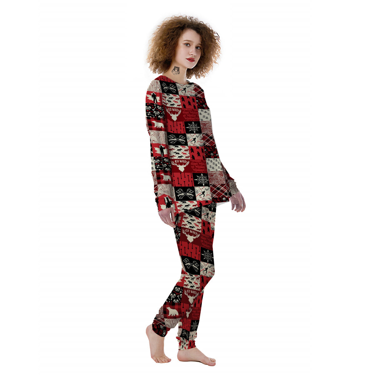 Wildlife Red Plaid Print Pattern Women's Pajamas