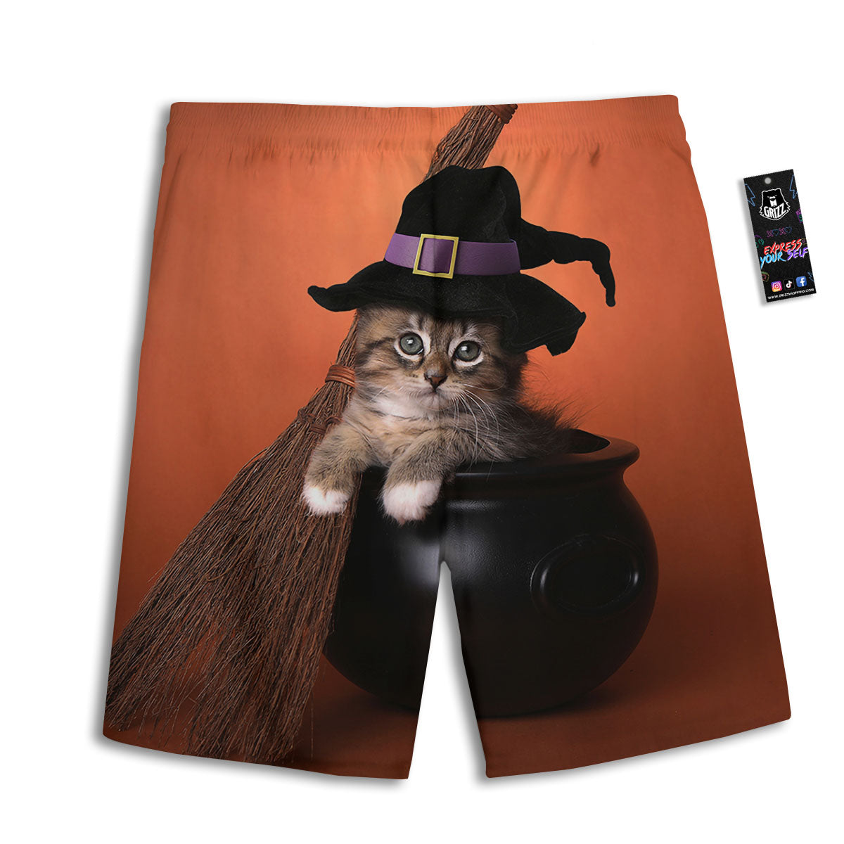 Witch Cat Halloween Cute Print Men's Athletic Shorts