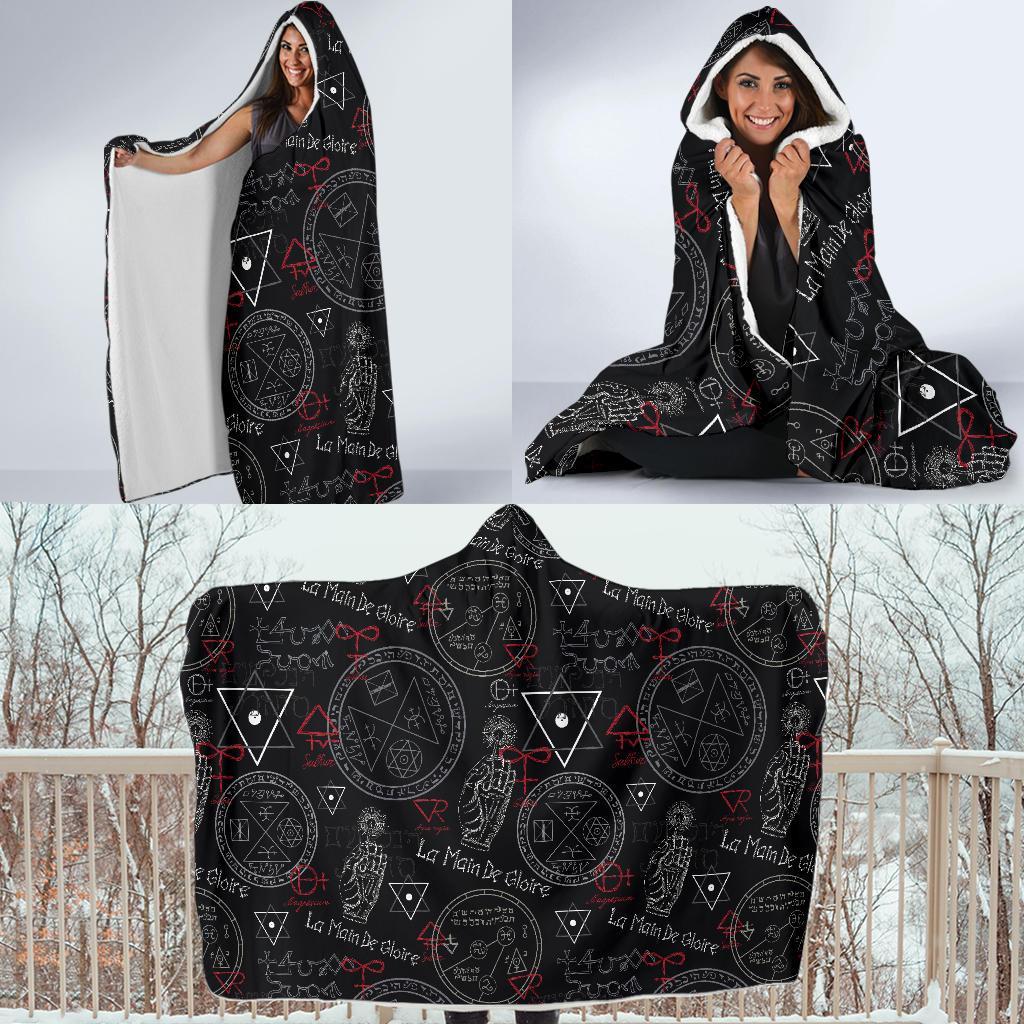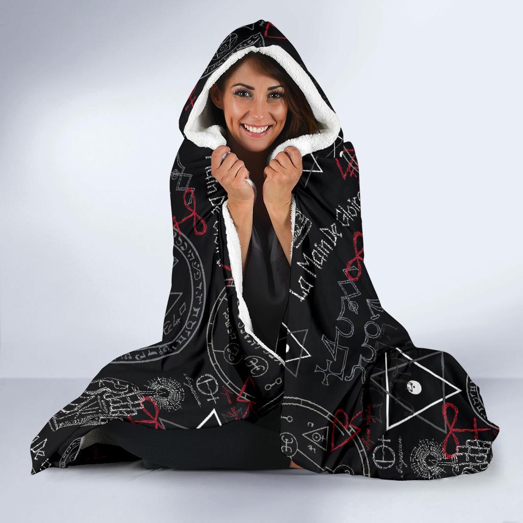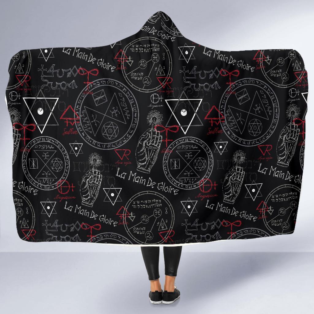 Witch Wiccan Pagan Pattern Print Hooded Blanket