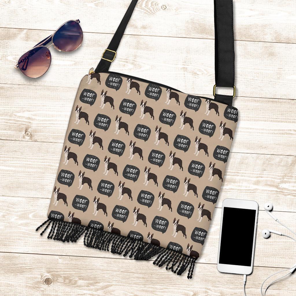Woof Woof Boston Terrier Pattern Print Crossbody Bags
