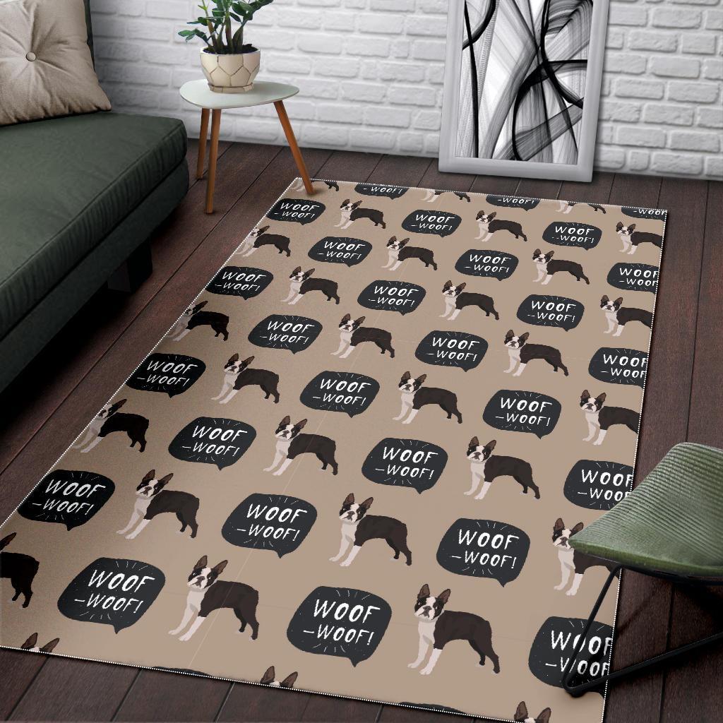 Woof Woof Boston Terrier Pattern Print Floor Mat