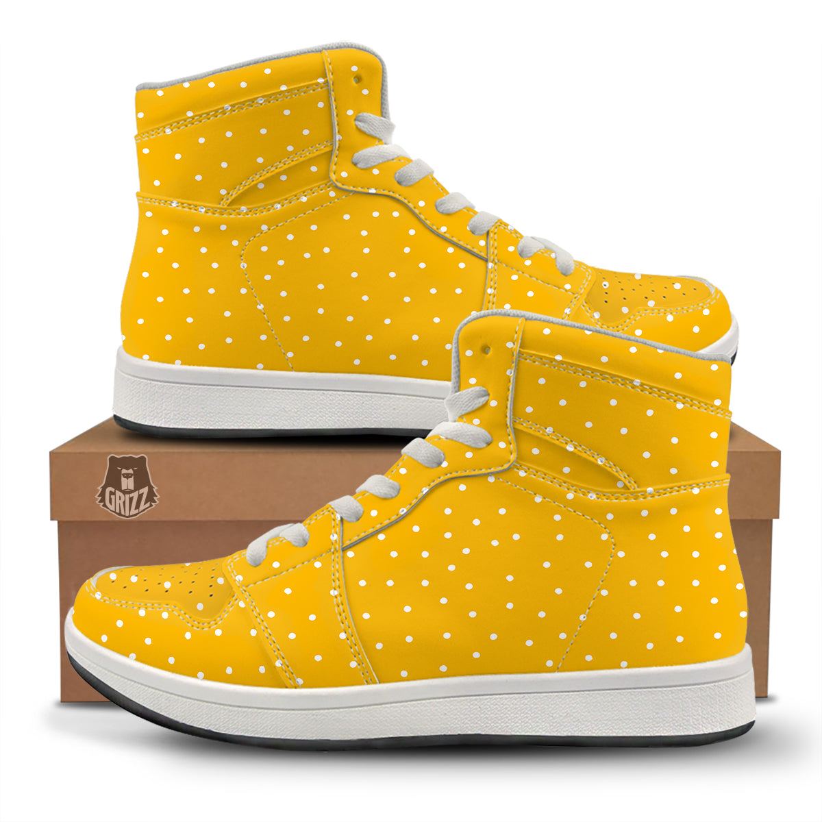 Yellow And White Polka Dot Print Pattern High Top Sneakers