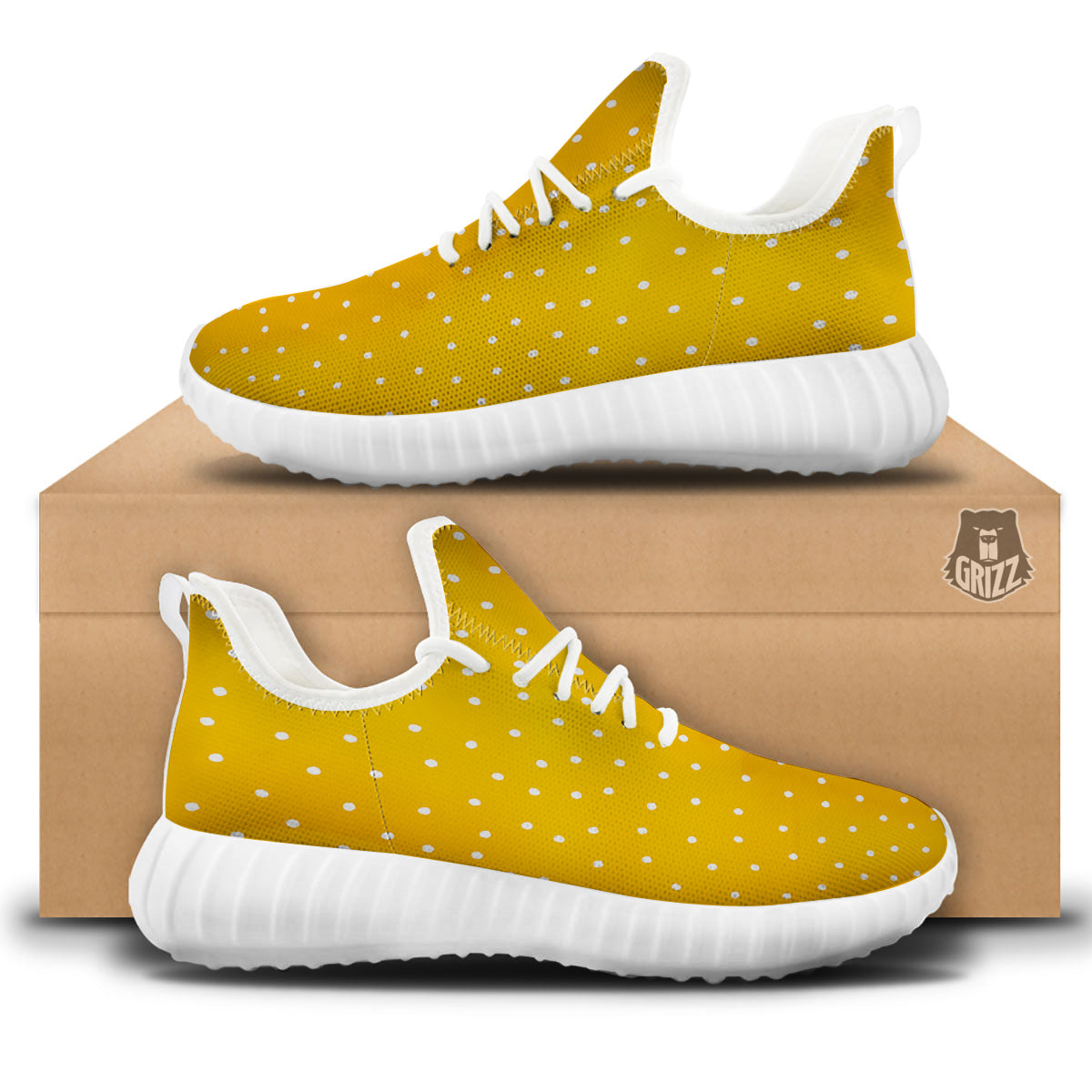 Yellow And White Polka Dot Print Pattern White Walking Shoes