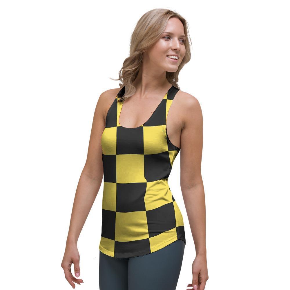 Looking for a unique tank top? Check out our Yellow Checkered Print Women's Racerback Tank Top at Grizzshopping. Our tank top are handcrafted to the highest quality standards that custom made for you