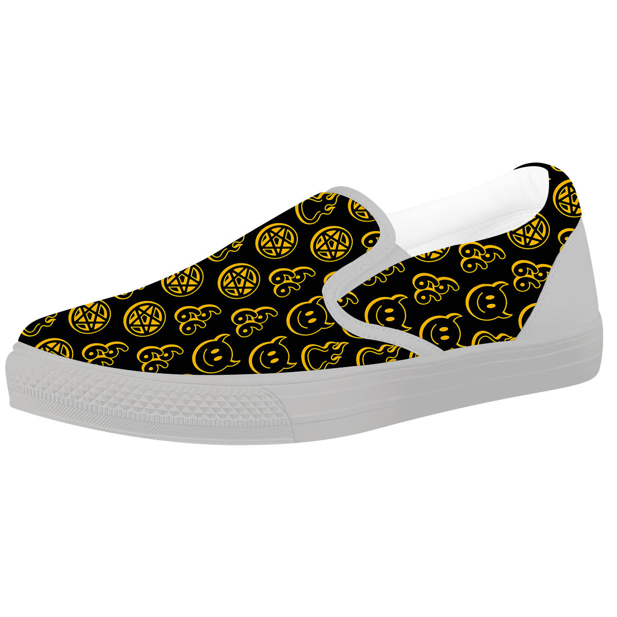 Yellow Demon Smile And Symbol Print Pattern White Slip On Shoes