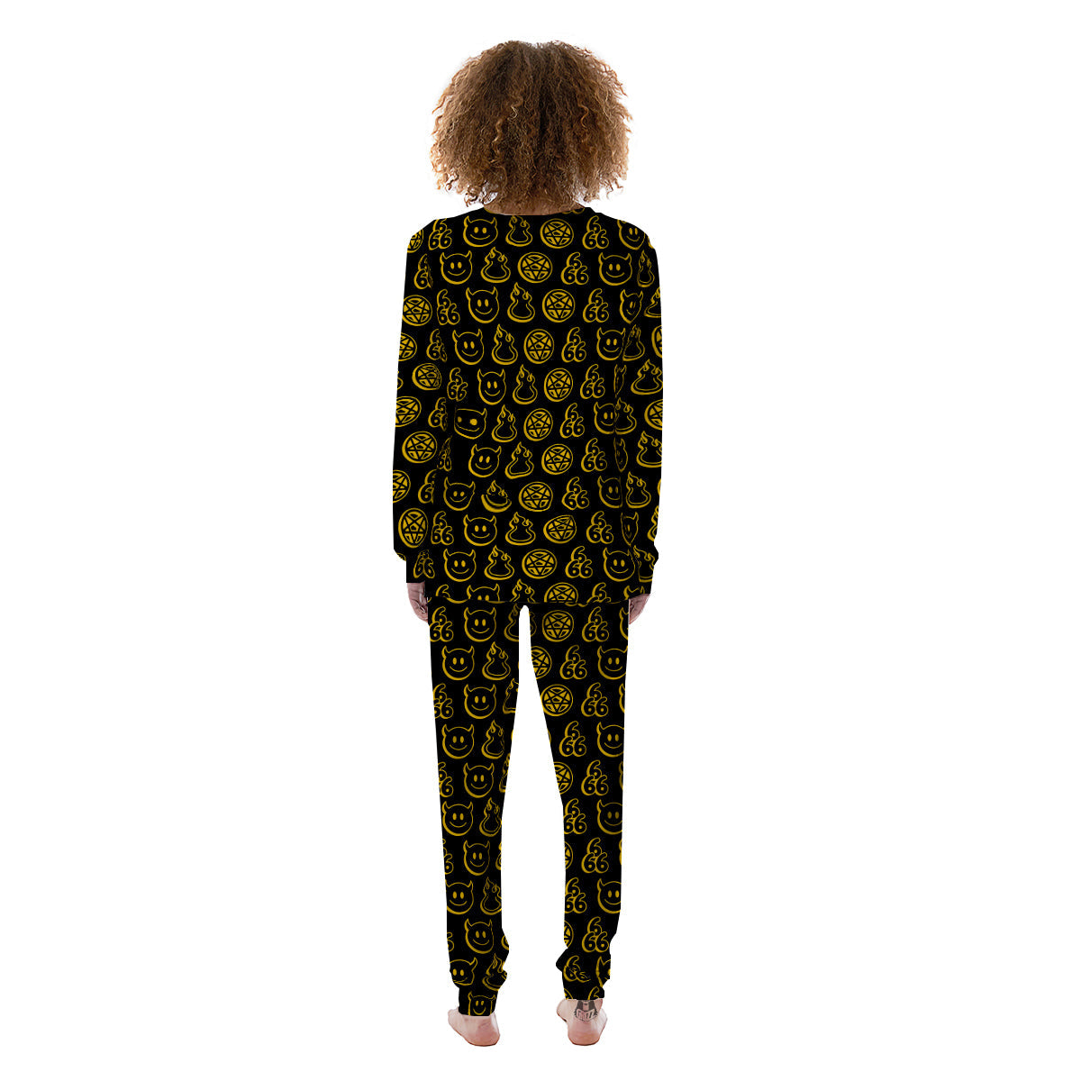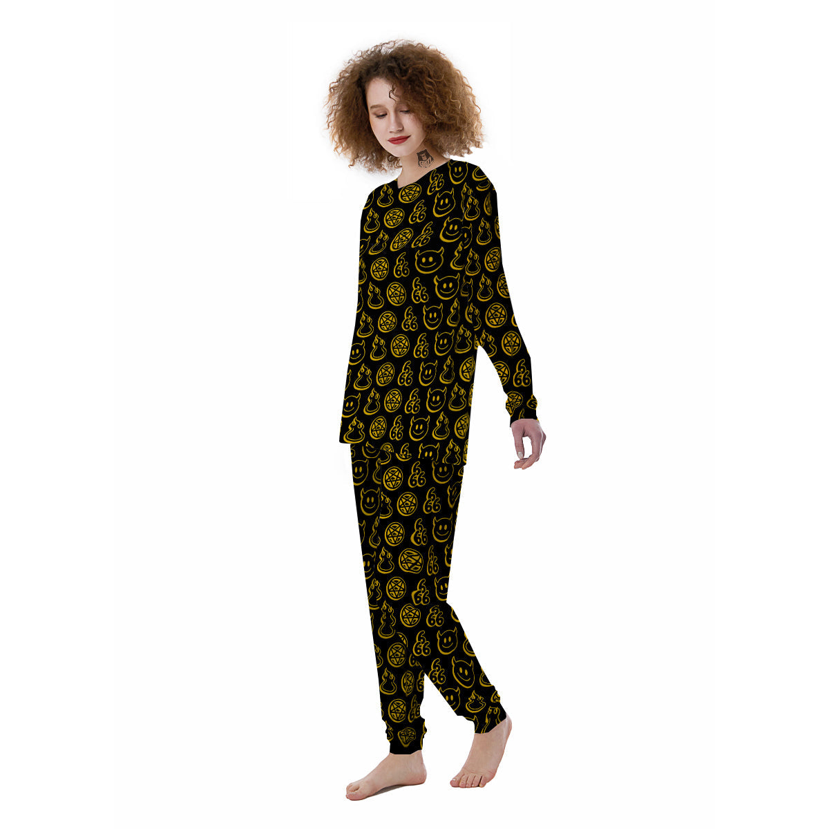 Yellow Demon Smile And Symbol Print Pattern Women's Pajamas