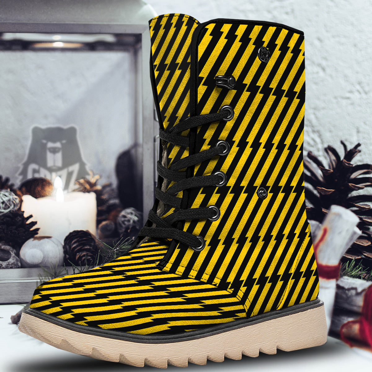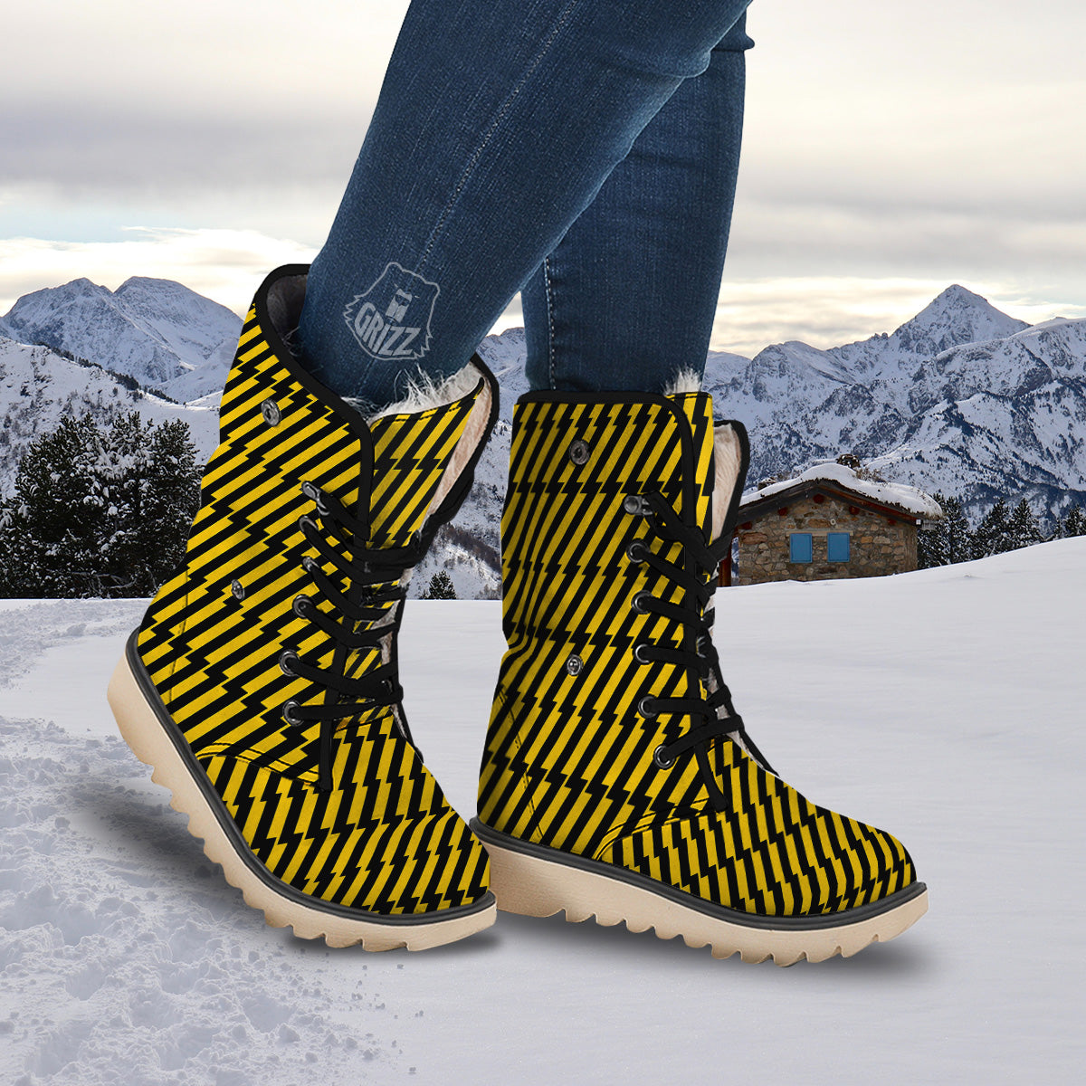 Looking for unique snow boots? Check out our Yellow Lightning Spark Print Pattern Snow Boots at Grizzshopping. Our snow boots are handcrafted to the highest quality standards that custom made for you