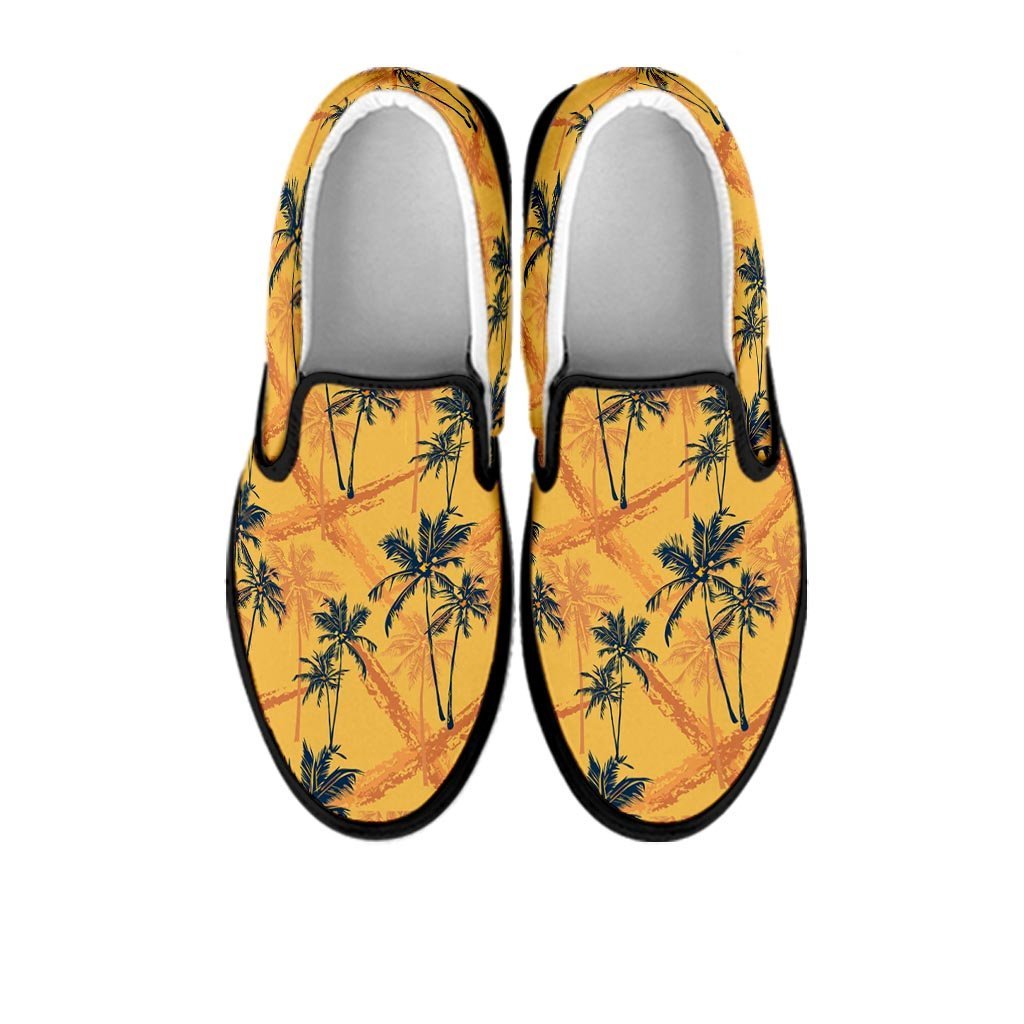 Yellow Palm Tree Hawaiian Print Women's Slip On Sneakers