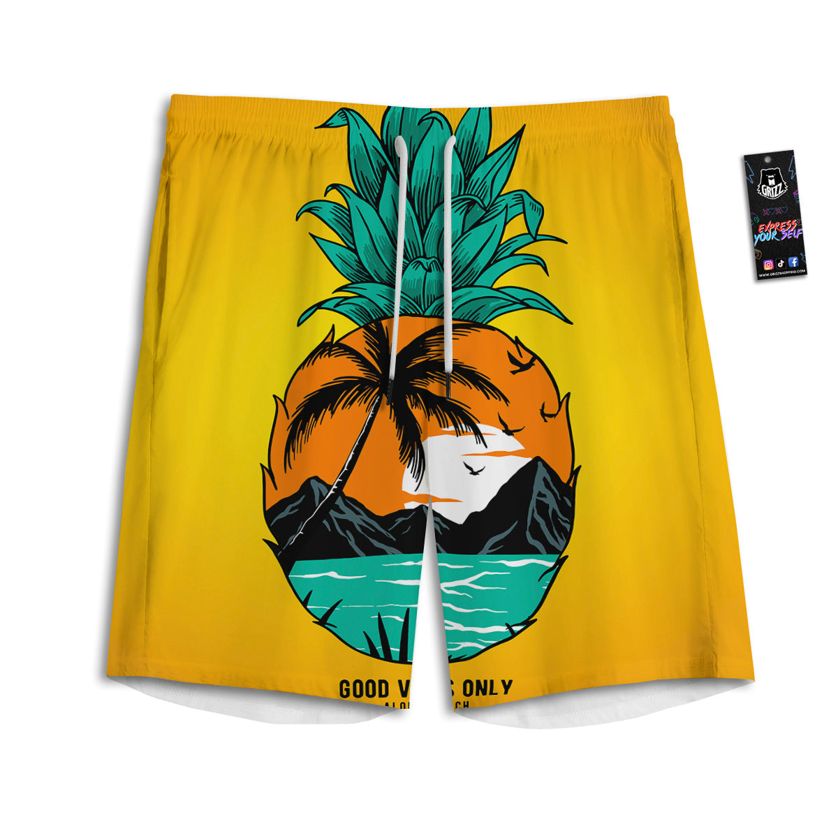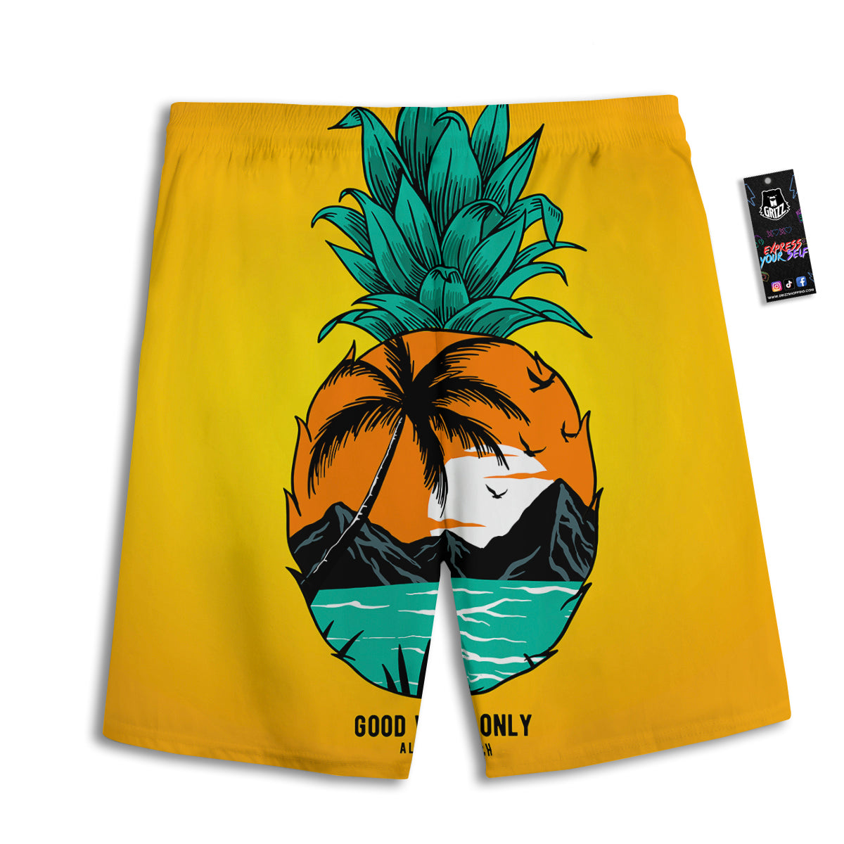 Yellow Pineapple Aloha Tropical Island Print Men's Athletic Shorts