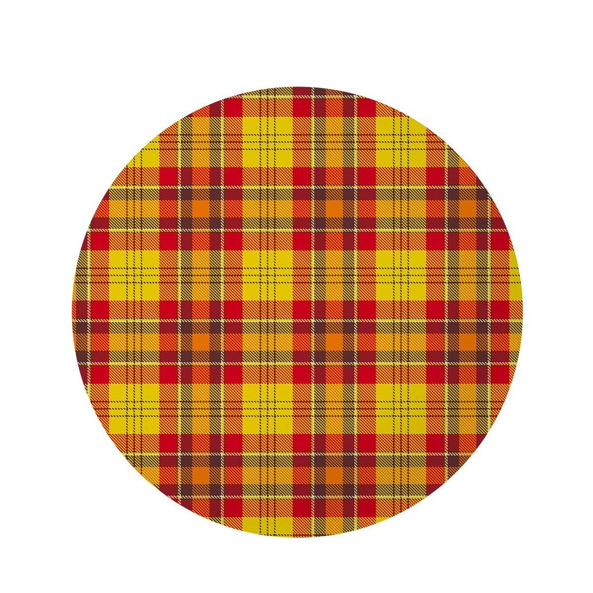 Yellow Plaid Tartan Round Rug