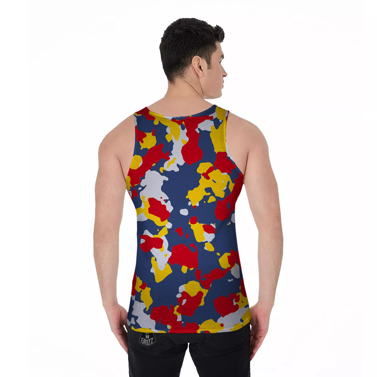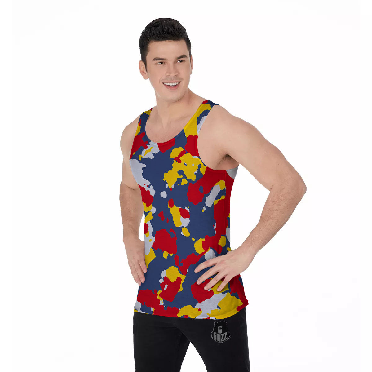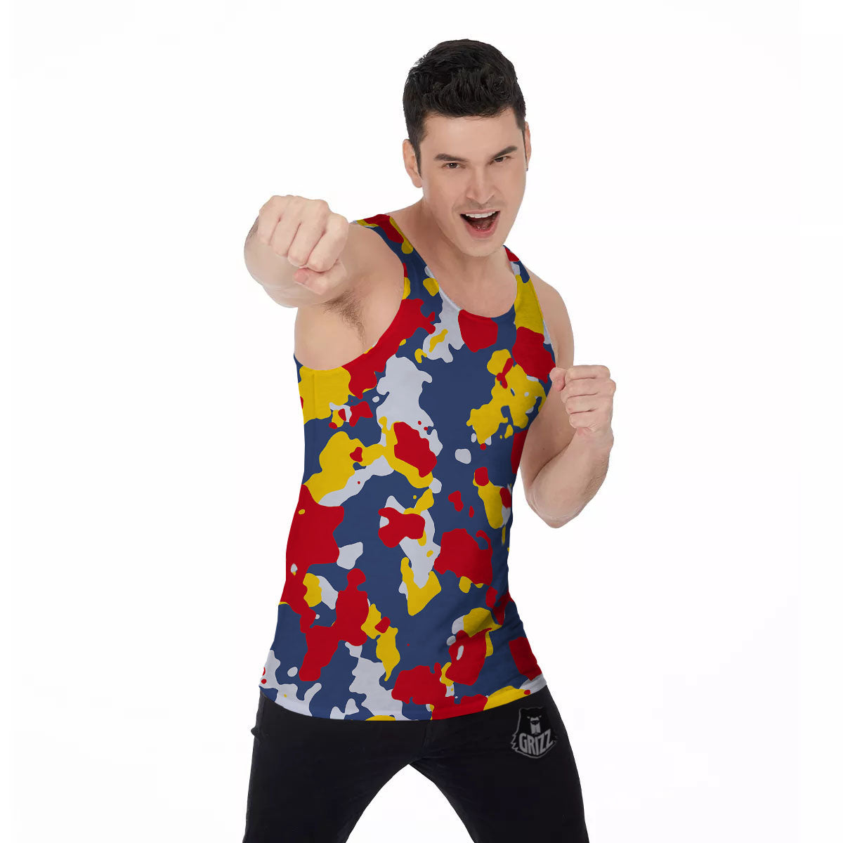 Yellow Red And Blue Camouflage Print Men's Tank Top