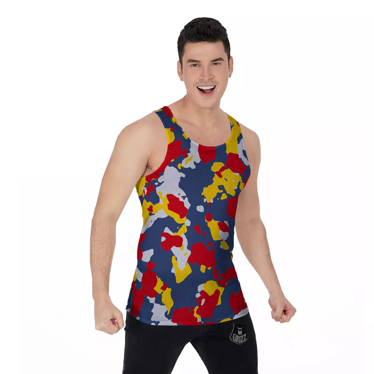 Looking for a unique Tank Top? Check out our Yellow Red And Blue Camouflage Print Men's Tank Top at Grizzshopping. Our Tank Top are handcrafted to the highest quality standards that custom made for you